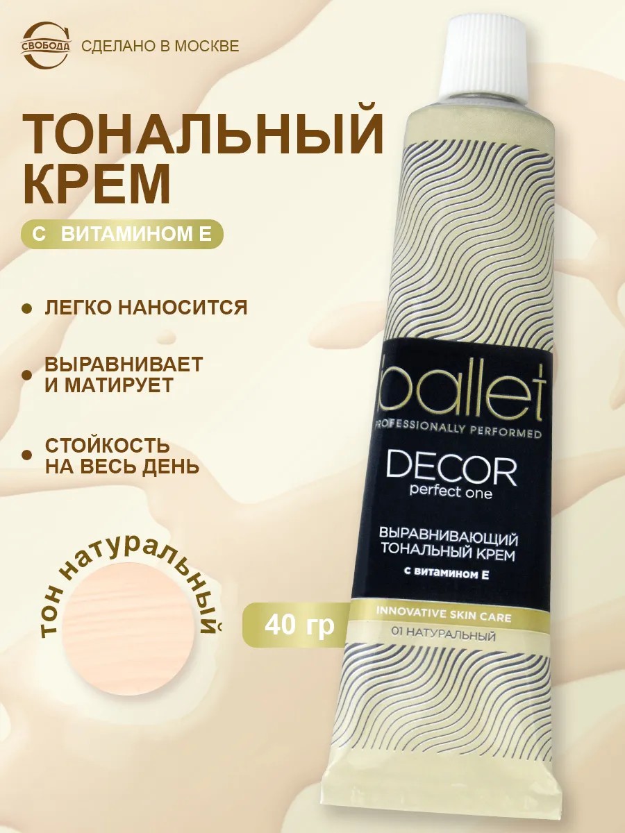 Тональный крем Ballet 01 Натуральный — классический тональный крем для повседневного макияжа, который легко распределяется, выравнивает тон лица и даёт аккуратный матовый бархатистый финиш без жирного блеска. Оттенок натуральный бежевый (тон 01) выглядит естественно, подстраивается под цвет кожи и уместен для офиса и учёбы. Формула комфортна для всех типов кожи и особенно хорошо работает на комбинированной коже с активной T-зоной, помогая держать свежий вид в течение дня.