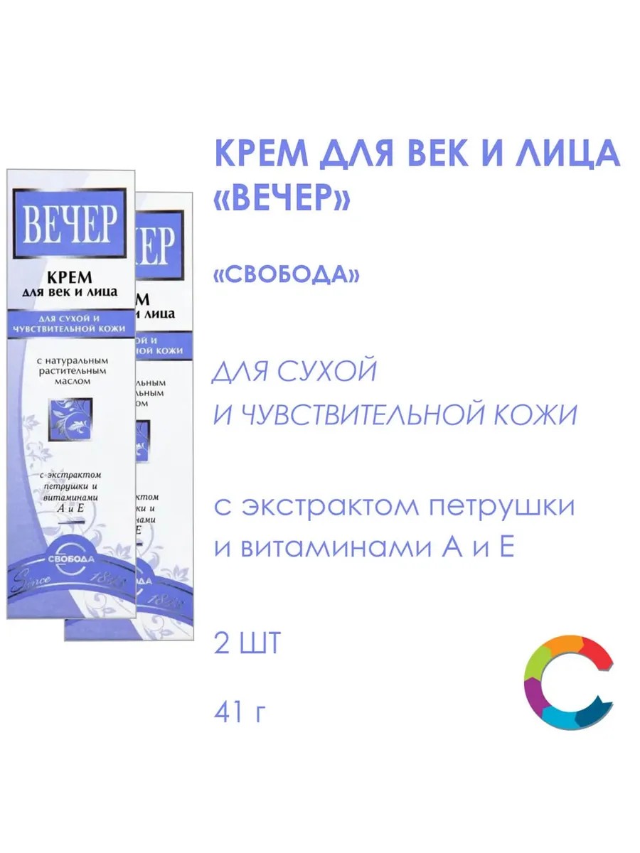 | Полное наименование товара | Крем для век и лица Вечер Свобода 41г 2 штуки |