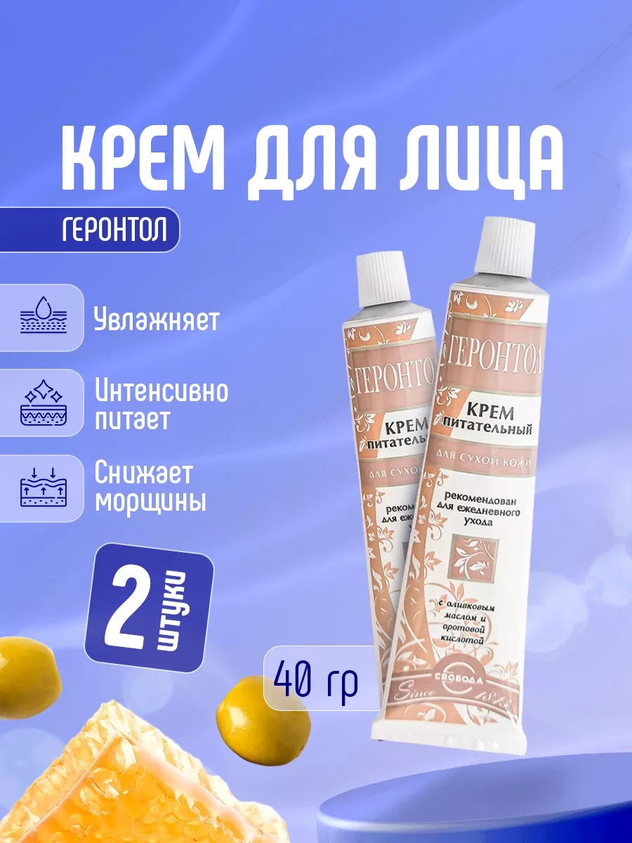Свобода Крем для лица Питательный для сухой кожи Геронтол набор 2шт*40г алюминиевая туба.