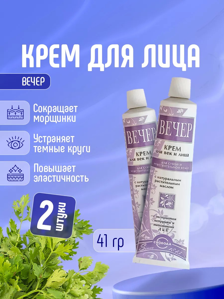 Свобода Крем для лица и век Вечер с экстрактом петрушки и витаминами А и Е набор 2шт*41г алюминиевая туба.