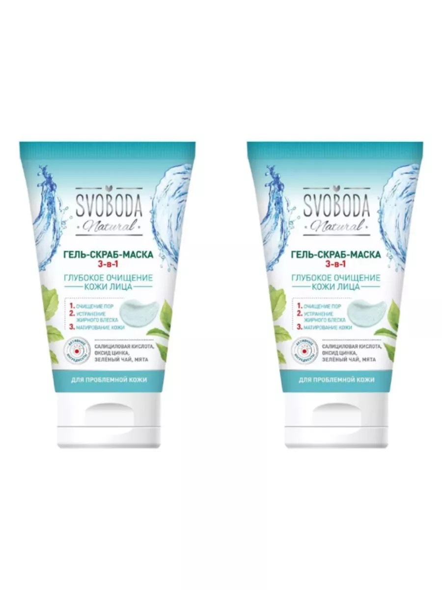 СВОБОДА Гель-скраб-маска 3в1 Глубокое очищение 150 мл 2 шт
