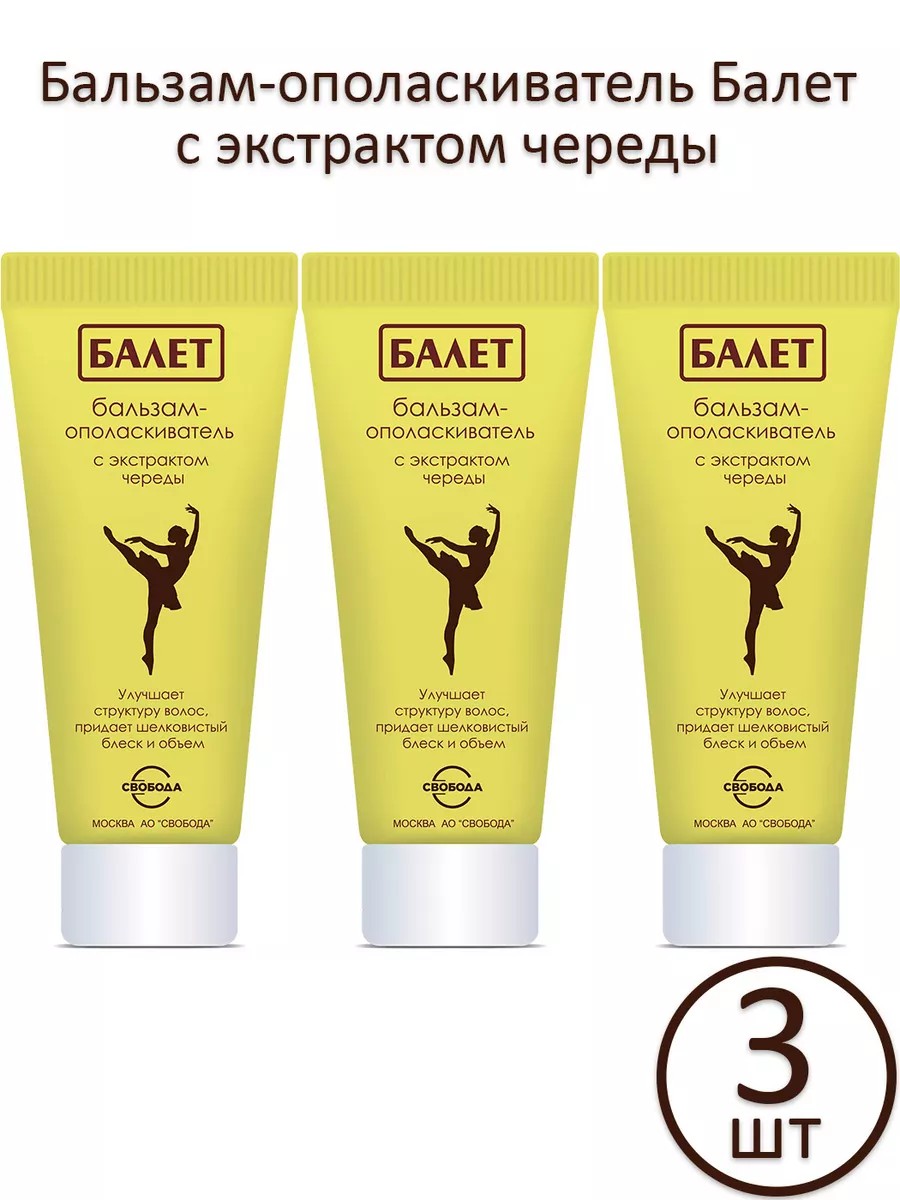 Бальзам-ополаскиватель для волос "Балет" с экстрактом череды особенно эффективен для сухих и ослабленных волос, а также после окрашивания и химической завивки.