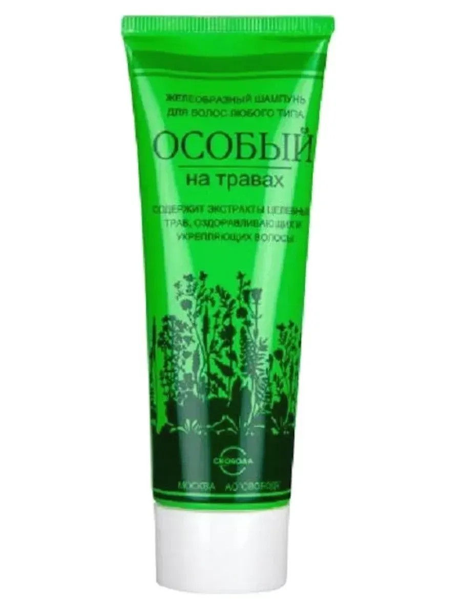 Свобода Шампунь для волос Особый на травах желеобразный, 76 мл, 1 шт. Предназначен для ухода за волосами любого типа. Нейтральная основа шампуня мягко моет волосы, благотворно действует на кожу головы. Комплекс целебных трав крапивы и корня солодки укрепляет волосы и препятствует их выпадению. Лецитин нормализует водно-жировой баланс кожи головы и придает волосам блеск.