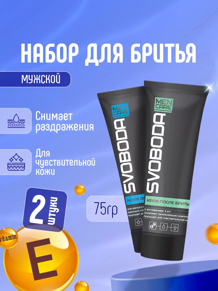 Позаботьтесь о своей коже с профессиональным набором для бритья Svoboda. В комплект входят два средства по 75 грамм каждое: крем для бритья и крем после бритья, созданные специально для комфортного ухода за мужской кожей.