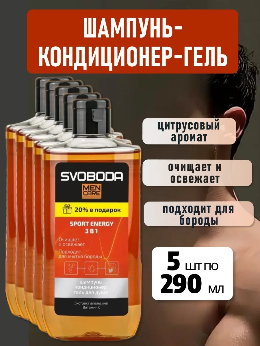 SVOBODA MEN CARE Шампунь кондиционер гель для душа SPORT ENERGY 290мл