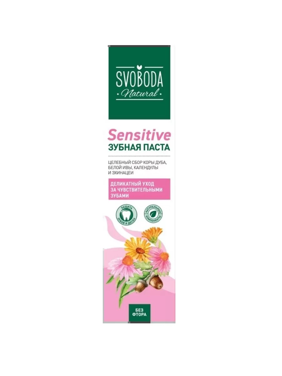 Svoboda Sensitive toothpaste provides comprehensive care for sensitive teeth and gums, combining protection, strengthening, and antioxidant support.