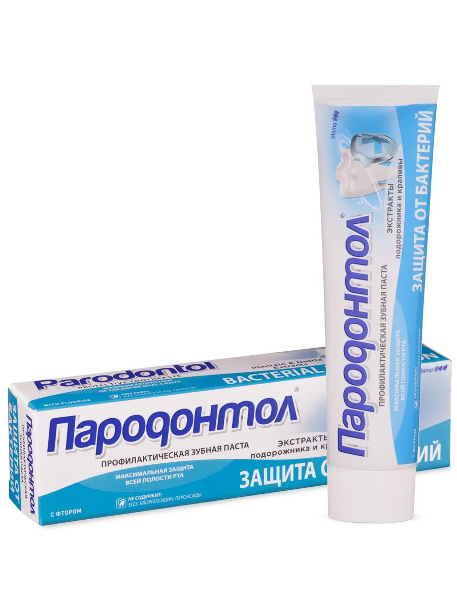 Набор из 2 шт Зубная паста Свобода Пародонтол Антибактериальная защита 124 г, в тубе . Комплект из 2 штук СВОБОДА Зубная паста Пародонтол Антибактериальная защита 124 г в уп, 12 упЭффективно защищает от бактерий за счет сочетания Триклозана, Фтора, Экстрактов трав. Подтверждено микробиологическими исследованиями в "ЦНИИС и ЧЛХ"Богатый химический состав высокоактивных экстрактов крапивы и подорожника оказывают кровоостанавливающее и противовоспалительное действие, стимулируют заживление воспаленных десен. Фтор - обеспечивает эффективную защиту от кариеса за счет направленного воздействия на бактерии, вызывающие кариес. Уважаемые клиенты!Обращаем ваше внимание на возможные изменения в дизайне упаковки. Поставка осуществляется в зависимости от наличия на складе. Действие зубной пасты: Антибактериальный эффект; Количество штук в наборе: 2;