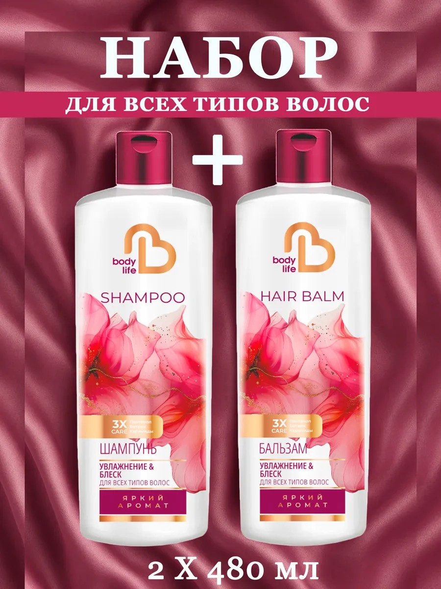 A set for all hair types. Includes shampoo and conditioner. The active formula is enriched with a liposomal complex, panthenol, allantoin, vitamins A and E, collagen, and elastin, providing a nourishing effect on hair and skin, leaving them nourished, hydrated, shiny, and beautiful day after day. The shampoo lathers beautifully and has a vibrant scent. 3X CARE triple care: panthenol nourishes and strengthens, ceramides restore and strengthen, maintaining smoothness and elasticity, and hydrolyzed wheat proteins prevent breakage and brittleness.