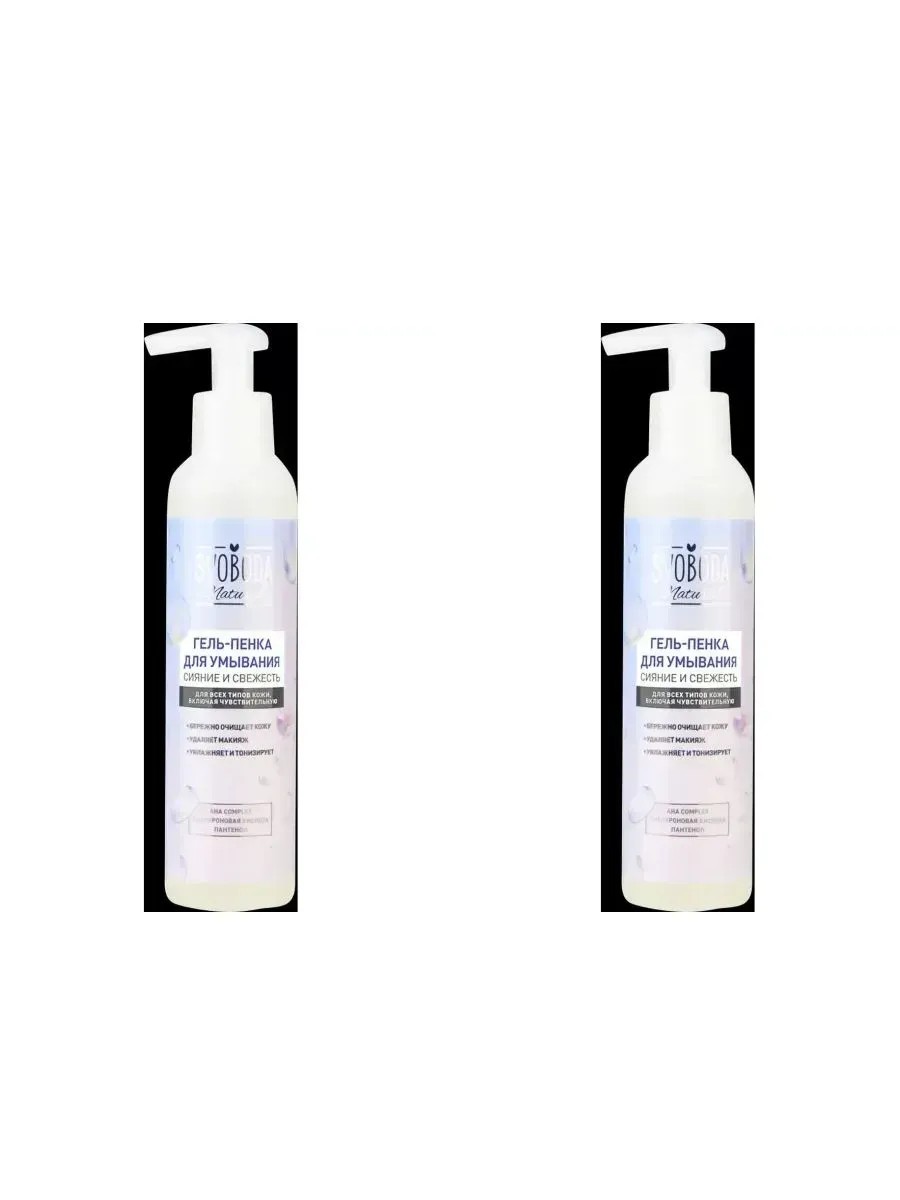 SVOBODA ГЕЛЬ-ПЕНКА ДЛЯ УМЫВАНИЯ СИЯНИЕ И СВЕЖЕСТЬ 185МЛГель-пенка для умывания Svoboda Natural Сияние и свежесть .Внешний вид: Нежная гелевая текстура с фруктовым ароматом.Активные компоненты:Содержит гиалуроновую кислоту, пантенол, AHA complexНежная гель-пенка бережно очищает кожу лица от загрязнений и макияжа, не вызывая пересушивания и раздражения.Входящая в состав гиалуроновая кислота интенсивно увлажняет кожу и придает ей тонус.Пантенол оказывает успокаивающее действие и стимулирует процесс естественного обновления кожи.AHA complex, включающий в себя фруктовые кислоты и экстракты, насыщает кожу витаминами и возвращает коже естественное сияние.Действие:1. Бережно очищает кожу2. Удаляет макияж3. Увлажняет и тонизируеттолько для наружного применения. При попадании в глаза промыть водой.0