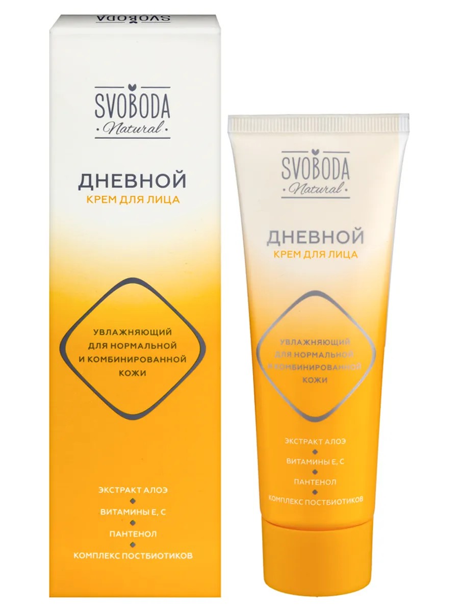 Крем для лица увлажняющий SVOBODA ночной для нормальной и комбинированной кожи - питает кожу ночью. Внешний вид : Легкая кремовая текстура, быстро впитывается, цвет нежный молочный белый. Активные компоненты:Содержит масло жожоба, витамины А, Е и С, гиалуроновая кислота, комплекс постбиотиков Ночной крем обеспечивает полноценный уход за кожей перед сном благодаря активным ингредиентам, входящим в его состав: Гиалуроновая кислота - увлажняет кожу, способствует её омоложению, снижает появление глубоких морщин; Масло жожоба питает и смягчает кожу, легко впитывается, не оставляя жирного блеска; Витамины А, Е и С - мощные антиоксиданты, препятствуют возникновению свободных радикалов, способствуют выработке собственного коллагена и восстановлению барьерных функций кожи; Специальный комплекс постбиотиков способствует восстановлению естественного микробиома кожи, обеспечивает профилактику преждевременного старения, улучшает рельеф кожи, стимулирует синтез коллагена и эластина, увлажняет кожу, обеспечивает защиту клеток эпидермиса от окислительного стресса, делая кожу гладкой, упругой, подтянутой. Результат: при реглярном использовании кожа увлажненная, морщины менее заметны.