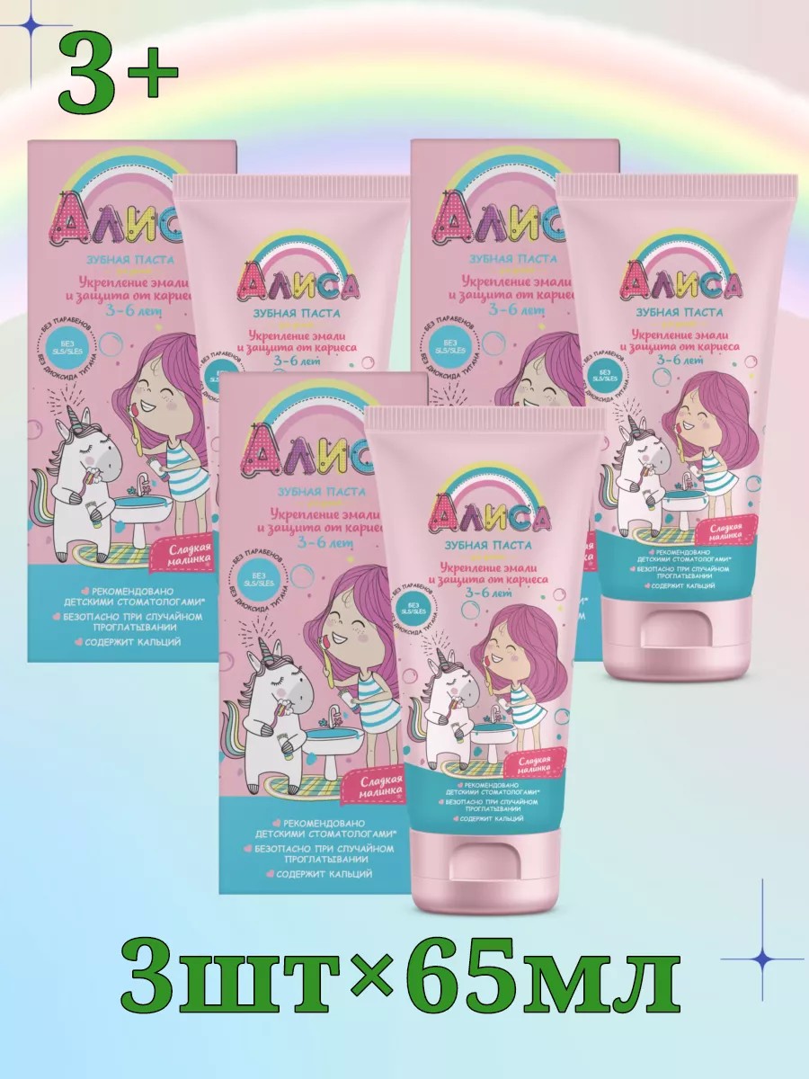 Важно для тех регионов, где в воде не достает фтора: зубная паста Алиса обладает концентрацией фтора 500ppm, что официально рекомендовано детям до 6 лет Ассоциацией стоматологов России.