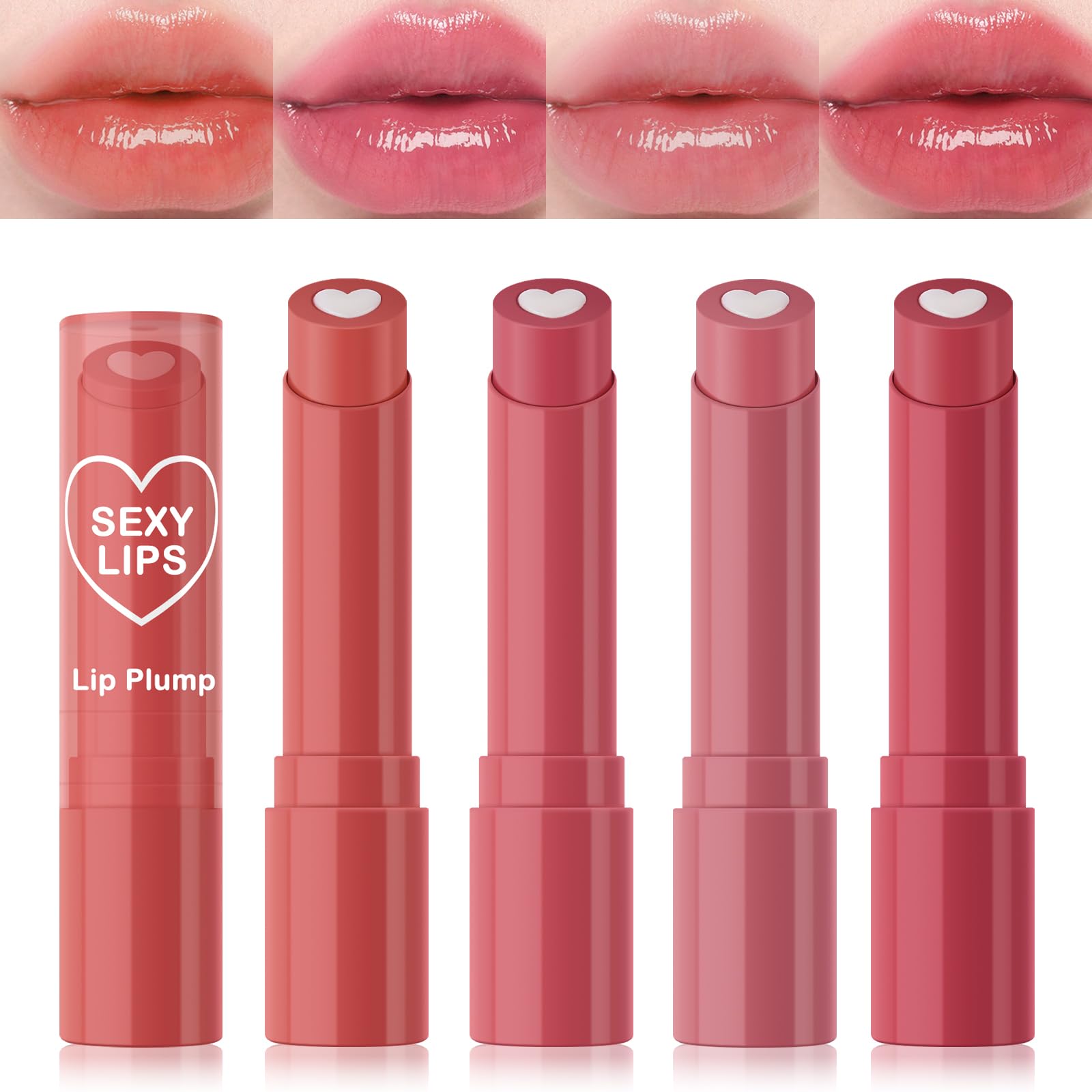 FREEORR 4 Pcs Hydrating Tint Lip Balm Sheer Lip Plump Shine with Vitamin E Beeswax Extract and Jojoba Seed Oil Lip Moisturizer Lipstick-A