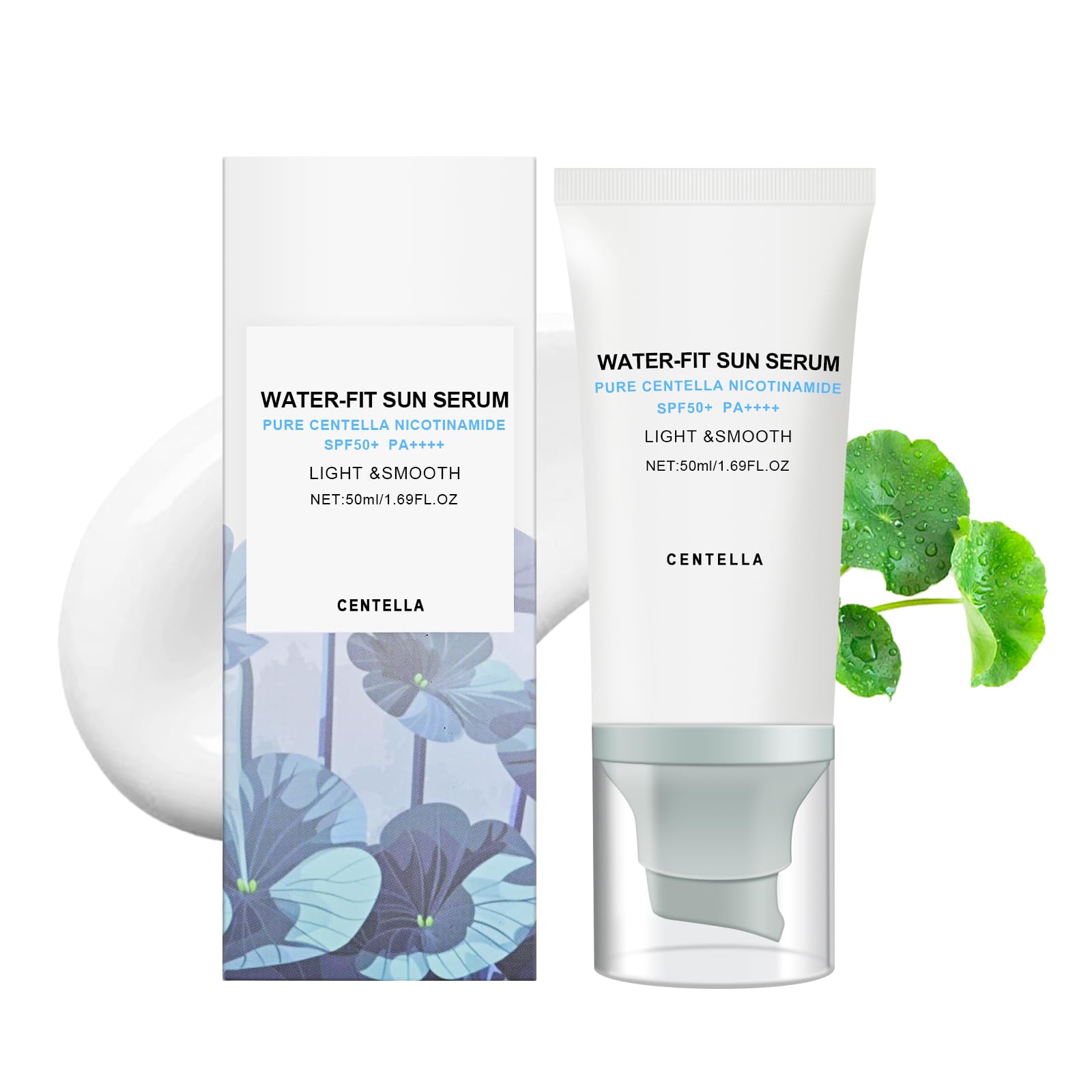 Travel Friendly Portable packaging and comfortable wearing provide reliable and lightweight protection for beach days, travel, outdoor running, and daily commuting. Suitable for All Skin Types The formula is mild and infused with plant extracts, suitable for all skin types. Simply apply an appropriate amount to the face and neck, gently massage until fully absorbed, and avoid direct contact with the eyes. Ultra Lightweight Cream Texture Its lightweight formula is absorbed immediately after application, no white cast, non-greasy and sticky, making it an ideal choice for makeup or standalone use. Soothes and Hydrates The water-fit sun serum injected natural centella asiatica extracts and hyalu cica which not only protects your skin but also moisturizes and nourishes it. Powerful Protection SPF 50 This moisturizing sun serum provides a high level of broad-spectrum SPF 50 protection. It can effectively filter UVA and UVB rays, prevent sunburn and spots, and protect the skin from UV damage.