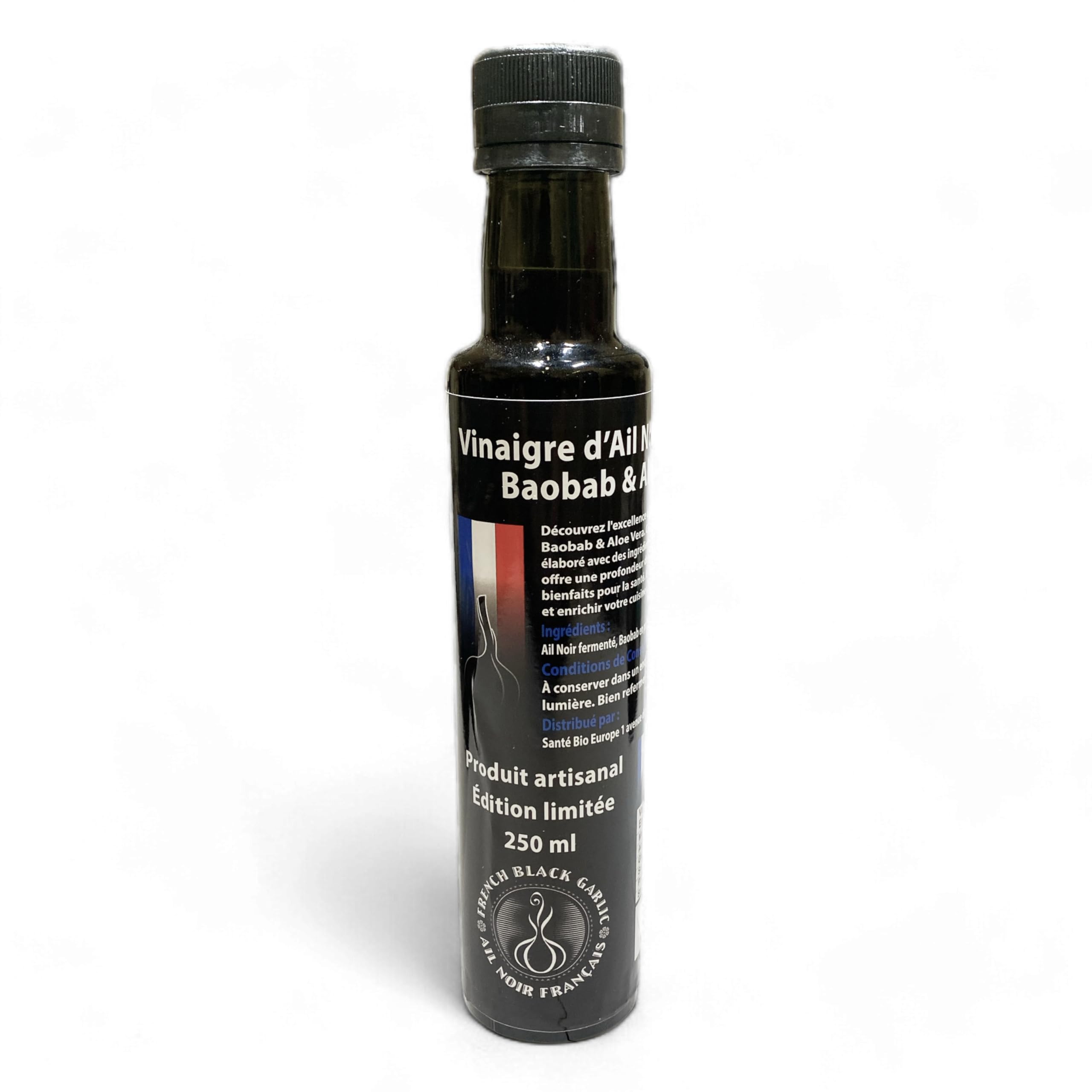 French Black Garlic French Black Garlic - Black Garlic Vinegar with Baobab and Aloe Vera - Premium Culinary Ingredient - Natural Antioxidant Rich in Vitamins and Trace Elements - 250ml