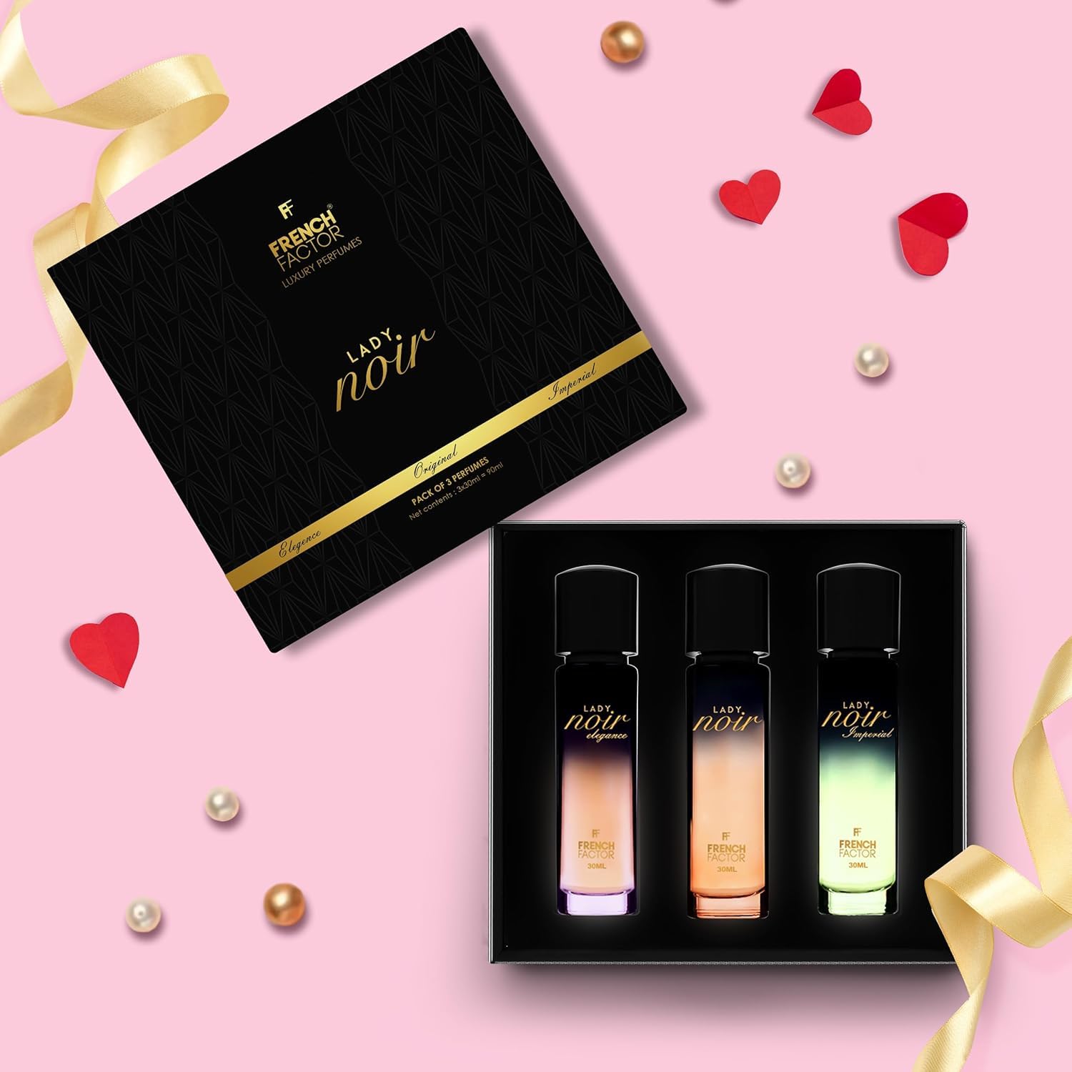 PORTABLE SIZE: Each 30ml bottle is perfectly sized for carrying in purses or travel bags while maintaining an elegant presence. PERFECT FOR OCCASIONS: Ideal for parties, daily wear, special events, or as a thoughtful gift for women and girls. LONG-LASTING FORMULA: Premium eau de parfum concentration ensures the scent remains noticeable throughout the day. FRAGRANCE VARIETY: Set includes three distinct sophisticated scents perfect for different occasions and moods. GIFT SET CONTENTS: Luxurious collection of three 30ml French Lady Noir perfumes, elegantly packaged for an impressive presentation.