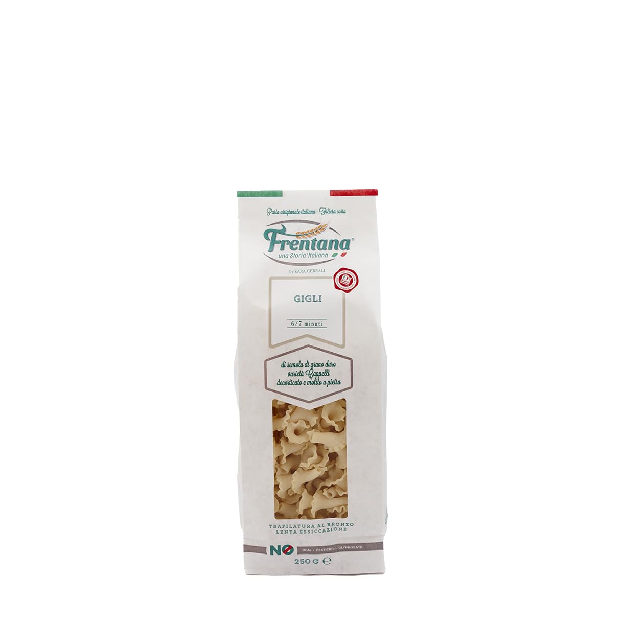 Frentana is a top quality company that respects the environment and people. A reality that has grown, step by step, by opting for transparency, ecological sustainability, pure Italian craftsmanship, but above all the head of a unique chain of its kind. A controlled and certified chain that brings a product from the ground to the table with a story to discover. Frentana, in collaboration with Zara Cereali, represents the first pasta factory to join the Authentico project, thus choosing to involve consumers in the production process of their favorite pasta. This is possible thanks to a platform accessible to everyone that, by scanning a QR code on the product one wants to buy, identifies not only the country of origin, but also the region of origin of the raw material, as well as its transformation phases. An ISO certified product, but also and especially Residuzero certified from pesticides. A pasta that is healthy, suitable for children in smaller sizes, but also for athletes because of its high protein value and digestibility. The Frentana brand pasta is available in four types: - From durum wheat semolina Cappelli - From whole wheat semolina from durum wheat Cappelli - From durum wheat semolina - From whole wheat spelled semolina The formats are numerous, as many as 36, and the packages are available in bags of 250 g and 500 g, to give everyone the opportunity to enjoy our pasta without waste. INGREDIENTS Senatore Cappelli durum wheat semolina peeled and ground on stone, waterFRENTANA - Gigli van Cappelli harde tarwegries, brons getrokken en langzaam gedroogd, Italiaanse pasta, ambachtelijke productie, verpakking van 24 x 250gr Frentana is een bedrijf van topkwaliteit, dat respect heeft voor het milieu en de mensen. Een realiteit die, stap voor stap, is gegroeid door te kiezen voor transparantie, ecologische duurzaamheid, puur Italiaans vakmanschap, maar vooral de kop van een unieke keten in zijn soort. Een gecontroleerde en gecertificeerde keten die van de grond naar de tafel een product brengt met een verhaal om te ontdekken. Frentana vertegenwoordigt in samenwerking met Zara Cereali de eerste pastafabriek die zich bij het Authentico-project aansluit, en zo ervoor kiest om consumenten bij het productieproces van hun favoriete pasta te betrekken. Dit is mogelijk dankzij een voor iedereen toegankelijk platform dat, door het scannen van een QR-code op het product dat men wil kopen, niet alleen het land van herkomst identificeert, maar ook de regio van herkomst van de grondstof, evenals de transformatiefasen daarvan. Een ISO-gecertificeerd product, maar ook en vooral Residuzero-gecertificeerd van pesticiden. Een pasta die dus gezond is, geschikt voor kinderen in de kleinere formaten, maar ook voor sporters vanwege de hoge proteïnewaarde en verteerbaarheid. De pasta van het merk Frentana is verkrijgbaar in vier soorten: - Van harde tarwegriesmeel Cappelli - Van volkoren griesmeel van harde tarwe Cappelli - Van harde tarwegriesmeel - Van volkoren speltgriesmeel De formaten zijn talrijk, wel 36, en de verpakkingen zijn verkrijgbaar in zakken van 250 g en 500 g, om iedereen de mogelijkheid te geven van onze pasta te genieten, zonder verspilling. INGREDIËNTEN Senatore Cappelli harde tarwe griesmeel geschild en op steen gemalen, water
