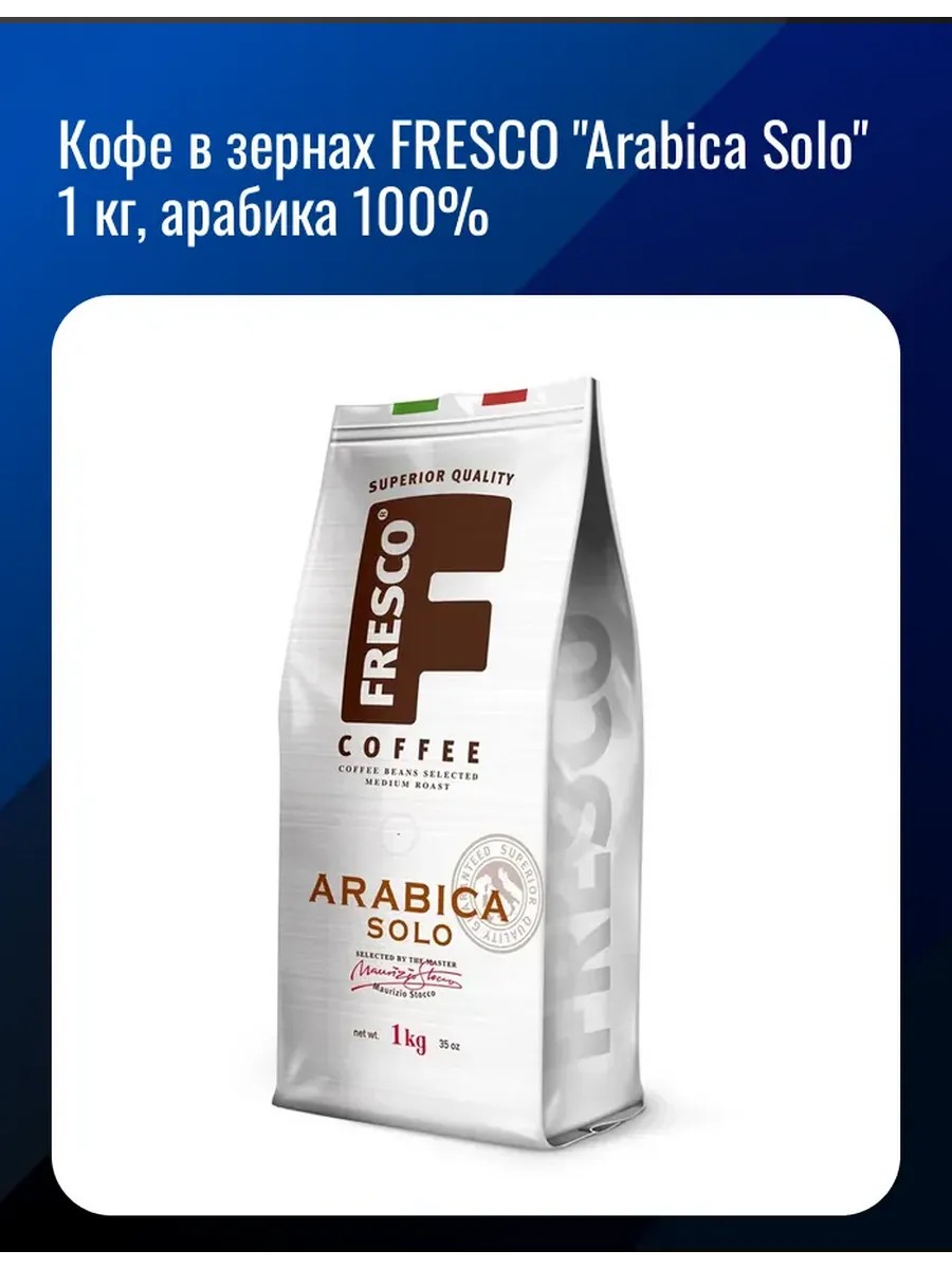 Кофе в зернах FRESCO "Arabica Solo" 1 кг, арабика 100%