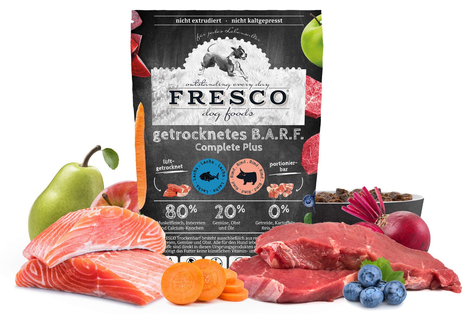 The dog is not only damaged by environmental influences, but also incregly by the ingredients contained in food. The preservatives, additives and chemical residues they contain may be co-responsible for diseases such as tumors, kidney and liver damage, musculoskeletal disorders, fertility disorders and allergies. This is why FRESCO does not use all additives in FRESCO Drybarf food. Most dog foods are made from poor quality raw materials, mainly grains, bone meals and fats. Often, only a very small proportion of fresh meat is contained in fresh meat, but meat meals are processed which are declared as dried meat. The manufacturing of FRESCO B.A.R.F. dried. Stands out from all traditional "Premium" kibbles. Instead of extruding the ingredients under high pressure and high temperature, they are carefully freeze-dried in air and in the freezer. For the production of 1 kg of dry beard, we use up to 4 kg of ready-made beard, because moisture is almost completely removed by drying. Through our gentle drying process, the essential nutrients of the original ingredients are preserved. Power recommendation: Young dogs up to 8 years old. months: approximately 2 to 3 dog up to 15 kg approximately 1 to 1.5 dog between 15 and 30 kg approximately 1 dog from 30 kg approximately 0.8 to 1 . The indication in refers to the body weight of your dog. Example: a dog weighing 20 kg and a recommended daily ration of 1 requires 200 g of food per day. Dry barf contains approximately 490 kcal 100 g. The above values are indicative for the amount of food for normal activity. However, individual needs may differ by up to 50 from the calculated values based on age, race or activity.Complete food for dogs. FRESCO In comparison, dry barf uses only natural ingredients. In our food, you will find only fresh meat, bones and offal, vegetables, fruits and selected oils. Analytical components: protein 44 , crude fat 25 , moisture 8 , crude ash 5 , crude fiber 2 . Composition: 25 salmon, 25 beef, 15 beef heart, 15 beef liver, 8 carrots, 4 beetroot, 2 apple, 2 pear, 1 sunflower oil, 0.8 cod liver oil, 0.5 wheat germ oil, 0.4 salmon oil, 0.4 algae limestone. k 0.4 blueberries, 0.4 rosehips, 0.1 seaweed. FRESCO Complete Plus Salmon with Beef consists exclusively of pure muscle meat and offal from salmon and beef, fresh vegetables and fruits, and selected oils. Le chien n'est pas seulement endommagé par les influences environnementales, mais aussi de plus en plus par les ingrédients contenus dans les aliments. Les conservateurs, les additifs et les résidus chimiques qu'ils contiennent peuvent être co-responsables de maladies telles que les tumeurs, les lésions rénales et hépatiques, les troubles musculo-squelettiques, les troubles de la fertilité et les allergies. C'est pourquoi FRESCO renonce à tous les additifs dans la nourriture FRESCO Drybarf. La plupart des aliments pour chiens sont composés de matières premières de mauvaise qualité, principalement des céréales, des farines d'os et des graisses. Souvent, seule une très faible proportion de viande fraîche est contenue dans la viande fraîche, mais on traite des farines de viande qui sont déclarées viandes séchées. La fabrication de FRESCO B.A.R.F. séché. Se distingue de toutes les croquettes traditionnelles « Premium ». Au lieu d'extruder les ingrédients sous haute pression et à haute température, ils sont soigneusement lyophilisés à l'air et au congélateur. Pour la production de 1 kg de barbe sèche, nous utilisons jusqu'à 4 kg de barbe prête à l'emploi, car l'humidité est presque complètement éliminée par le séchage. Grâce à notre processus de séchage doux, les nutriments essentiels des ingrédients d'origine sont préservés. Recommandation d'alimentation : Jeunes chiens jusqu'à 8 ans. mois : environ 2 à 3 chien jusqu'à 15 kg environ 1 à 1,5 chien entre 15 et 30 kg environ 1 chien à partir de 30 kg environ 0,8 à 1 . L'indication en se réfère au poids corporel de votre chien. Exemple : un chien pesant 20 kg et une ration quotidienne recommandée de 1 nécessite 200 g de nourriture par jour. Le barf sec contient environ 490 kcal 100 g. Les valeurs ci-dessus sont indicatives pour la quantité de nourriture pour une activité normale. Cependant, les besoins individuels peuvent différer jusqu'à 50 des valeurs calculées en fonction de l'âge, de la race ou de l'activité.Aliment complet pour chiens. FRESCO En comparaison, le barf sec utilise uniquement des ingrédients naturels. Dans notre nourriture, vous ne trouverez que de la viande fraîche, des os et des abats, des légumes, des fruits et des huiles sélectionnées. Composants analytiques : protéines 44 , matières grasses brutes 25 , humidité 8 , cendres brutes 5 , fibres brutes 2 . Composition : 25 saumon, 25 viande de bœuf, 15 cœur de bœuf, 15 foie de bœuf, 8 carottes, 4 betterave, 2 pomme, 2 poire, 1 huile de tournesol, 0,8 huile de foie de morue, 0,5 huile de germe de blé, 0,4 d'huile de saumon, 0,4 d'huile de saumon. de calcaire d'algues. k 0,4 de myrtilles, 0,4 d'églantier, 0,1 d'algue marine. FRESCO Le saumon Complete Plus au bœuf se compose exclusivement de viande musculaire pure et d'abats de saumon et de bœuf, de légumes et de fruits frais ainsi que d'huiles sélectionnées.