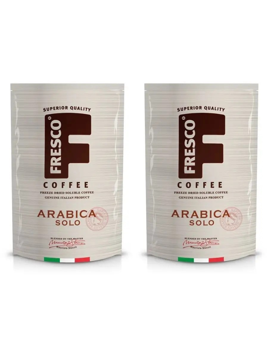 FRESCO Arabica Solo Coffee 75g, 2 pieces. The Italian brand Fresco Superior Quality Coffee was created in collaboration with one of Italy's most respected coffee sommeliers and is the result of Maurizio Stocco's passion and skill, his gift for combining, blending, and finding subtle combinations of Arabica bean roasting parameters, creating unique coffee flavors.