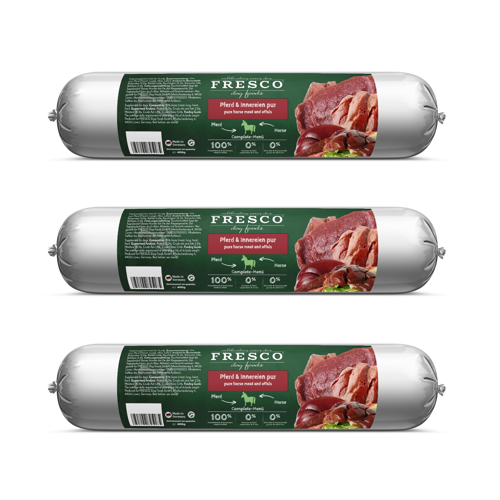 Fresco Dog Pure Horse Barf Sausage | Pack of 3 | 3 x 400 g | Complete Food for Dogs | Can Help to Feed Dogs Well | Only Horse as the Only Source of Protein