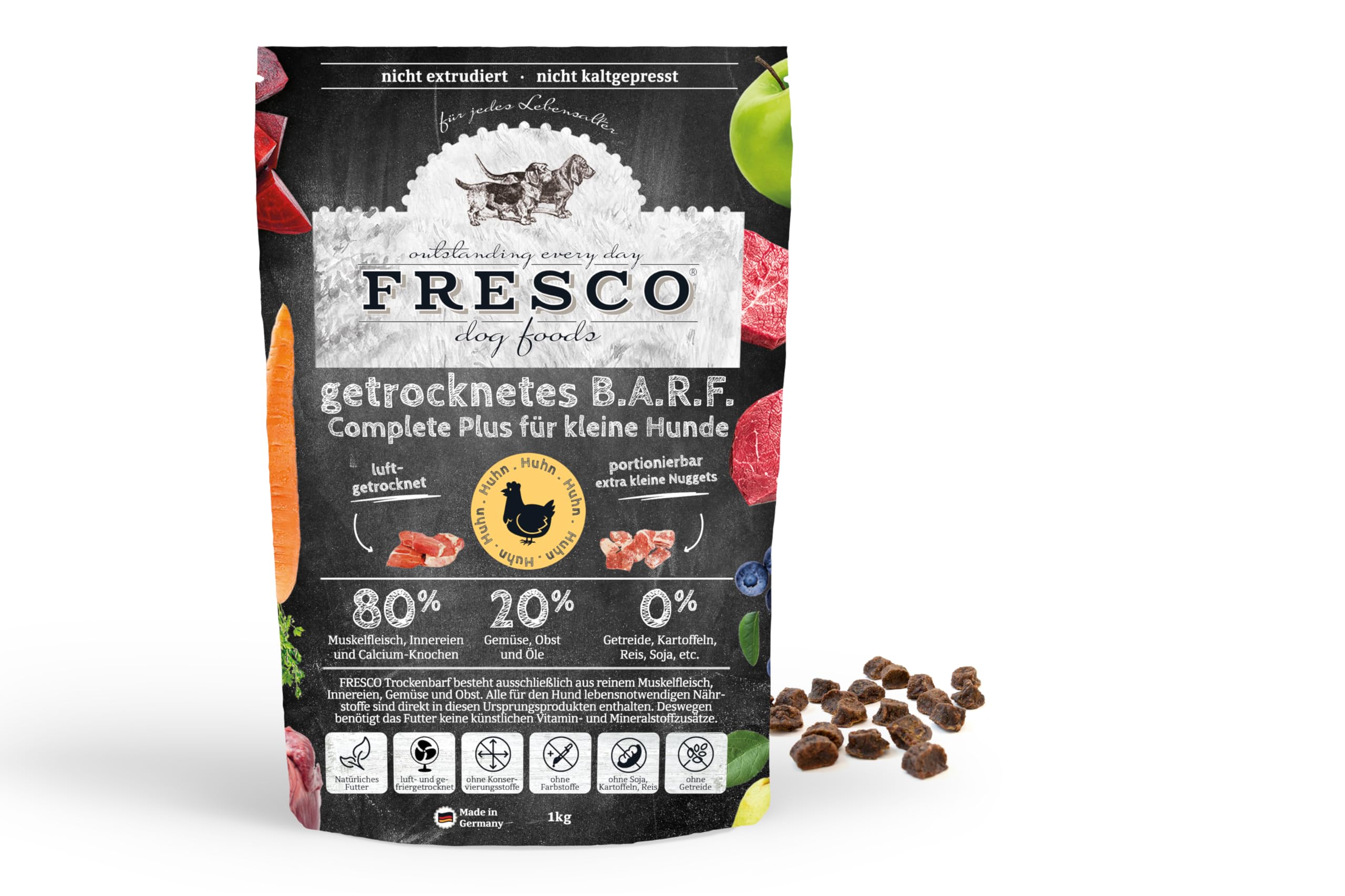 Fresco Complete Plus Dry Beef for Small Dogs consists exclusively of pure muscle meat, offal and calcium bones from chicken, as well as fresh fruits and vegetables and high-quality oils. The meat is not extruded or cold-pressed, but air-dried. The product contains a high proportion of fresh meat and fresh offal from chicken. No added artificial vitamins or preservatives INGREDIENTS Composition: 37 fresh chicken muscle meat, 16 fresh chicken stomach, 13 fresh chicken heart, 10 chicken breast bones, 4 freeze-dried chicken liver, 6 carrots, 3 apples, 3 pears, 3 beets, 1.8 sunflower oil, 1 blueberry. Cemes, 0.6 Cod liver oil, 0.4 Salmon oil, 0.4 Rosehip, 0.4 Seaweed lime, 0.1 SeaweedProtein Provider - Dogs need protein to build and maintain organs, muscles, and the function of enzymes. Meat is a good source of protein. No added artificial vitamins - Fresco Complete dry barf plus chicken for small dog breeds contains no added artificial vitamins or preservatives. Meat: The meat is not extruded or cold-pressed, but air-dried. The product contains a high proportion of fresh meat and chicken offal. Fresh fruits and vegetables with oil for small dogs - Fresco Complete dry barf plus for small dogs also contains fresh fruits and vegetables as well as high-quality oils. ✓ COMPLETE DRY BARF FOR DOGS - Fresco Complete dry barf plus chicken for small dogs consists exclusively of pure muscle meat, offal, and calcium bones from chicken. Fresco Le bœuf sec Complete Plus pour petits chiens se compose exclusivement de viande musculaire pure, d'abats et d'os de calcium du poulet, ainsi que de fruits et légumes frais et d'huiles de qualité supérieure. La viande n'est pas extrudée ou pressée à froid, mais séchée à l'air libre. Le produit contient une forte proportion de viande fraîche et d'abats frais de poulet. Sans ajout de vitamines artificielles ni de conservateurs INGRÉDIENTS Composition : 37 de viande musculaire fraîche de poulet, 16 d'estomac de poulet frais, 13 de cœur de poulet frais, 10 d'os de poitrine de poulet, 4 de foie de poulet lyophilisé, 6 de carottes, 3 de pommes, 3 de poires, 3 de betteraves, 1,8 d'huile de tournesol, 1 de myrtille. Cèmes, 0,6 Huile de foie de morue, 0,4 d'huile de saumon, 0,4 d'églantier, 0,4 de chaux d'algues, 0,1 d'algues marinesFournisseur de protéines - Pour la construction et le maintien des organes, des muscles et le fonctionnement des enzymes, le chien a besoin de protéines. La viande est un bon fournisseur de protéines. Sans ajout de vitamines artificielles - Le barf sec Fresco Complete plus poulet pour petites races de chiens est sans ajout de vitamines artificielles ou de conservateurs. Viande : la viande n'est pas extrudée ou pressée à froid, mais séchée à l'air libre. Le produit contient une forte proportion de viande fraîche et d'abats de poulet. Fruits et légumes frais avec de l'huile pour les petits chiens - Le barf sec Fresco Complete plus pour petits chiens contient également des fruits et légumes frais ainsi que des huiles de qualité supérieure. ✓ COMPLETE BARF Sèche pour chiens – Le barf sec Fresco Complete plus poulet pour petits chiens se compose exclusivement de viande musculaire pure, d'abats et d'os de calcium provenant du poulet.