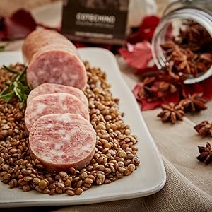✓ Secure Shipping - Our products are shipped refrigerated, so that the cold chain is not broken and the cotechino arrives fresh. ✓ Pure Pleasure - Our Cotechino is gluten-free, lactose-free, milk protein-free, and GMO-free. It can therefore be enjoyed by people with food intolerances. ✓ Cooking - After piercing the cotechino, as with a sausage, place it in a saucepan with plenty of cold water. Bring the water to a boil and then simmer for 2 hours. ✓ Long-standing Tradition - The Salumi Pi brand has been synonymous with high quality for generations. We perfect our products to guarantee the best taste. ✓ Cotechino - Made from pork, Cotechino goes well with lentil and chickpea dishes. It can be likened to a sausage. You will receive 500g of meat.✓ Expédition sécurisée - Nos produits sont expédiés réfrigérés, de manière à ce que la chaîne du froid ne soit pas brisée et que le cotechino arrive frais. ✓ Pur plaisir - Notre Cotechino est sans gluten, sans lactose, sans protéines de lait et sans OGM. Il peut donc être apprécié par les personnes souffrant d'intolérances alimentaires. ✓ Cuisson - Après avoir percé le cotechino, comme pour une saucisse, mettez le dans une casserole avec beaucoup d'eau froide. Portez l'eau à ébullition puis laissez mijoter 2 heures. ✓ Tradition de longue date - La marque Salumi Pi est synonyme de haute qualité depuis des générations. Nous perfectionnons nos produits pour garantir le meilleur goût. ✓ Cotechino - À base de porc, le Cotechino accompagne autant vos plats de lentilles, que de pois chiches. Il peut s'assimiler à une saucisse. Vous recevrez 500g de viande.