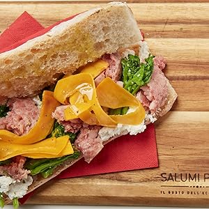 Il est produit avec de la viande 100 italienne, du sel et des épices, ficelé à la main et laissé à sécher pendant 24 heures afin de lui conférer son goût unique