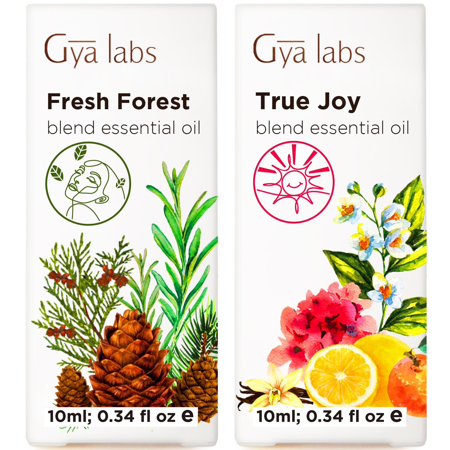 Fresh Forest Essential Oil Blend Diffuser & True Joy Essential Oil for Diffuser Set - Aromatherapy Grade Essential Oils Set - 2x0.34 fl oz - Gya Labs