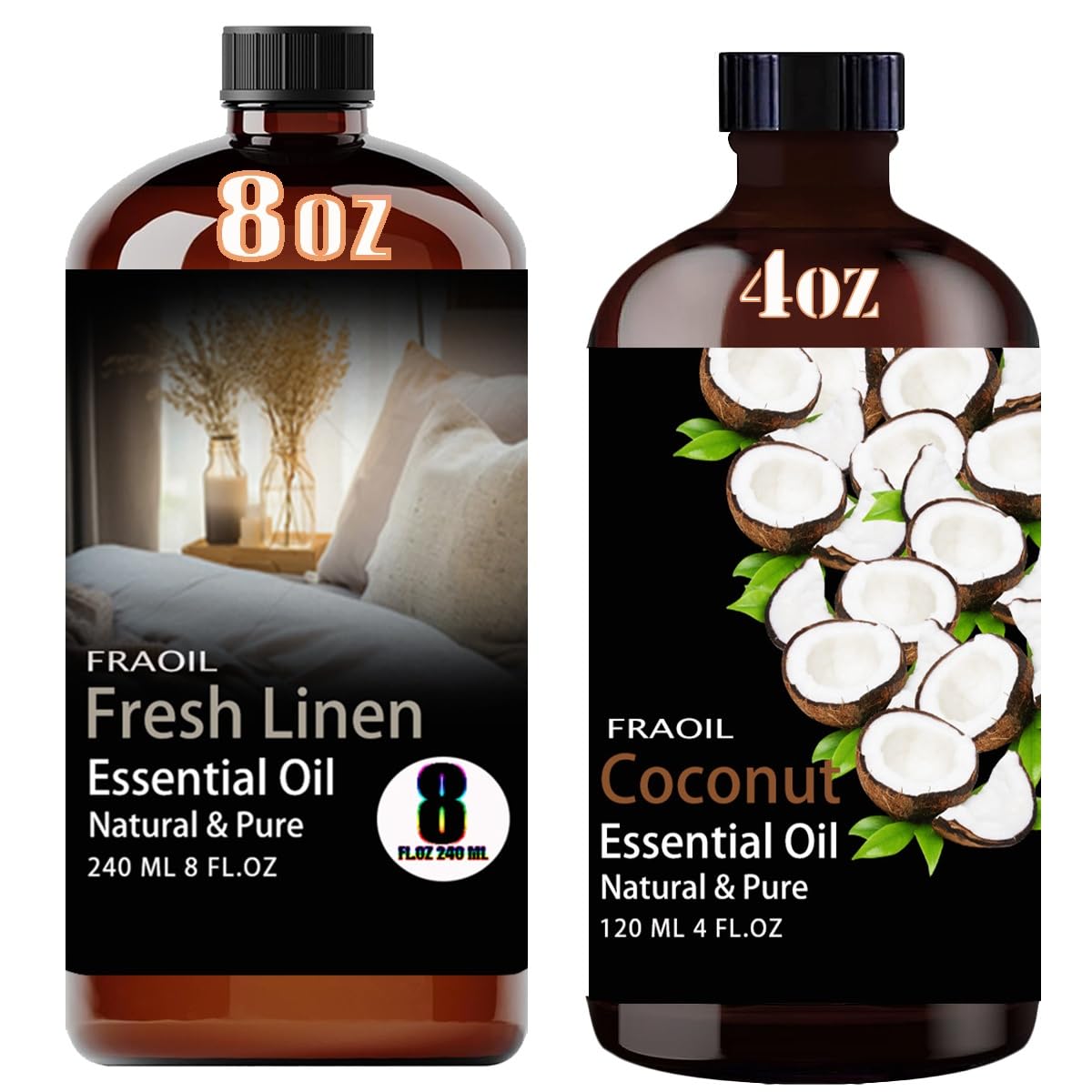 Welcome To FRAOIL Essential Oil, Fresh Linen Essential Oil 8 Fl Oz and Coconut Essential Oil 4 Fl Oz For Diffuser, Humidifier, Yoga, Cleaning, DIY Candle, Soap Making. Whether You Need Fresh Linen Essential Oil and Coconut Essential Oil Or Other Essential Oils, FRAOIL Has The Right Essential Oil For You. We Aim To Supply High-Quality Essential Oils At Competitive Rates. Thousands Of Users Have Enjoyed FRAOIL Essential Oil. If You Have Any Questions About Our Essential Oils, Please Feel Free To Contact Us.