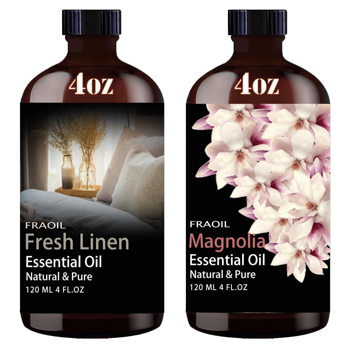 Fresh Linen Essential Oil and Magnolia Essential Oil 4 Fl Oz 120ML for Diffuser Humidifier Yoga Cleaning DIY Candle Soap Making Perfume Gift for Women Essential Oils