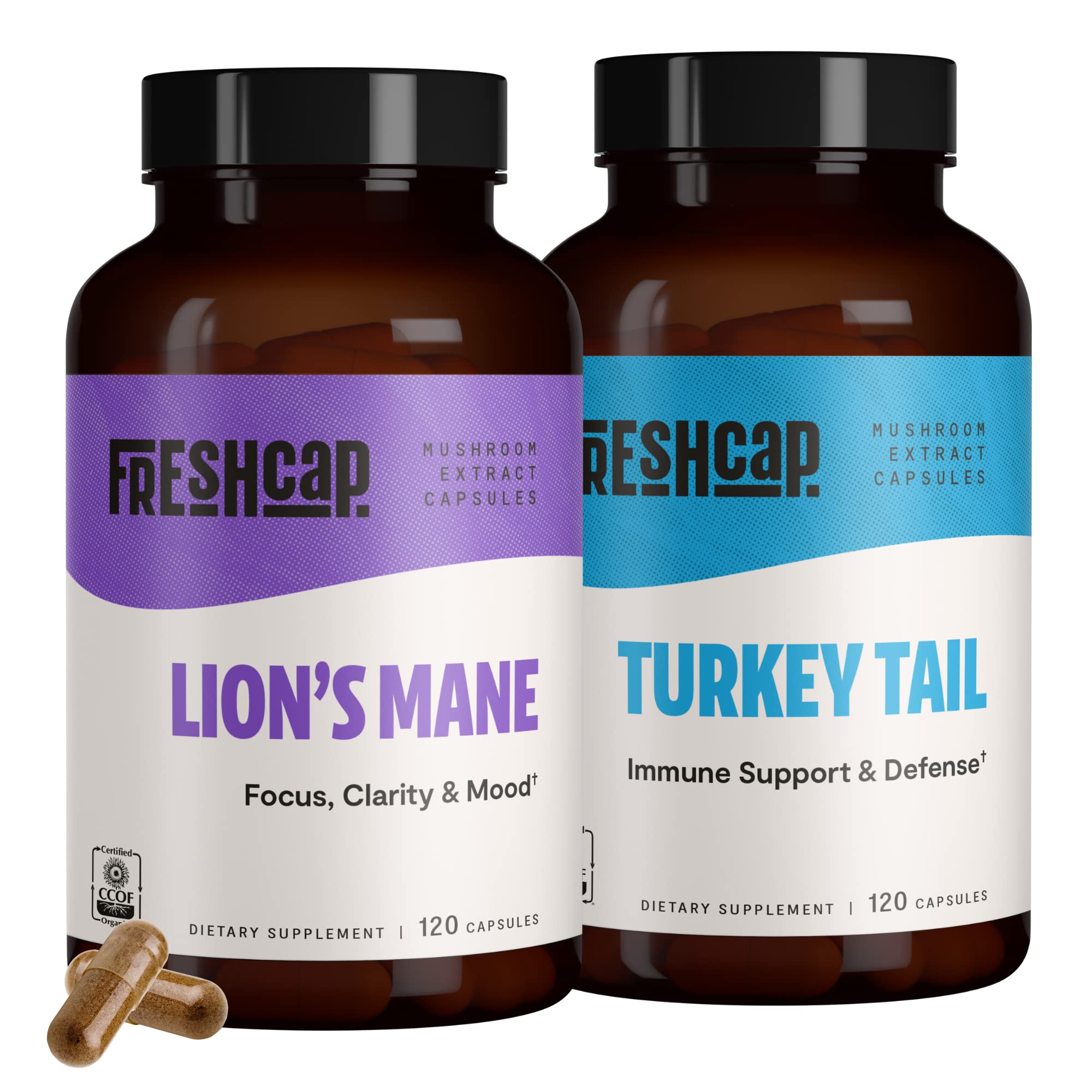 FreshCap Mushrooms Brain and Body Bundle (Capsules) - Lion's Mane Mushroom and Turkey Tail Mushroom Supplement Capsules