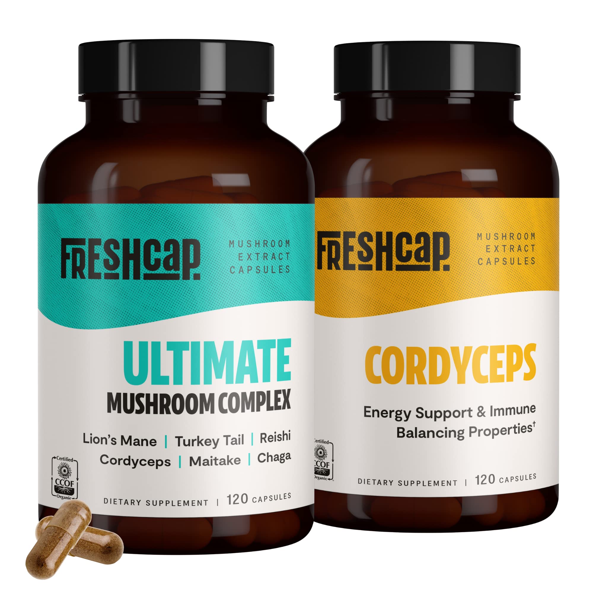 FreshCap Mushrooms Energy Bundle (Cordyceps Capsules and Ultimate Mushroom Complex Capsules)