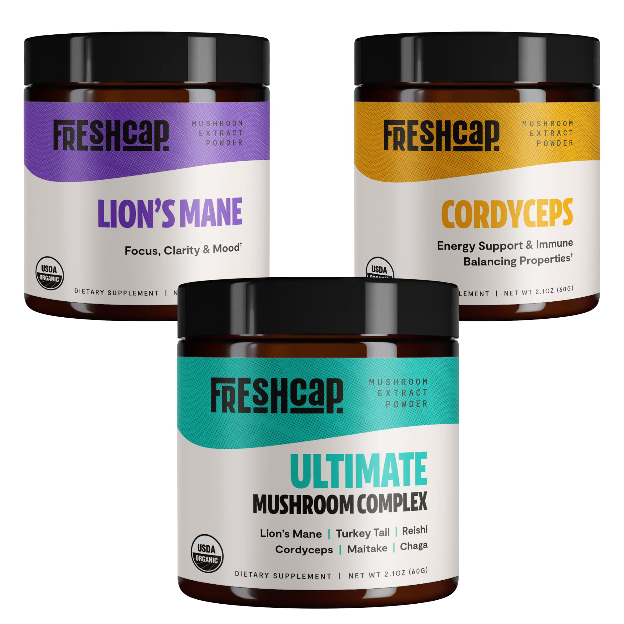 Trust the Experts: We want you to feel amazing and be happy. Get what you'd expect from a premium mushroom supplement. Easy To Use: FreshCap powders are easy to use, and can be added to coffee, tea or any other food. We use no other ingredients just pure mushrooms!. Why You Need Mushrooms: WHY YOU NEED MUSHROOMS: Mushroom extracts are the ultimate natural supplement used for energy, immunity and overall well-being. Tested And Verified: Contains potent and effective mushroom extracts. Analytically tested and scientifically verified beta-glucans levels, which are the beneficial compounds you're looking for. We use whole mushroom fruiting bodies, with no grain fillers or other additives. Pure Organic Mushrooms: Our mushroom supplements are Certified Organic, Non-GMO, Gluten Free, Vegan and Paleo friendly. This is as pure as it gets, as nature intended.