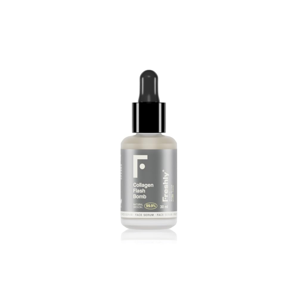 Tired face, signs of fatigue, sagging. Charge it with energy with this natural collagen serum that firms, plumps and restructures your skin. A natural formula based on biotechnologically obtained, vegan collagen that is 100 identical to that of your skin! Why does this facial treatment have a dual effect? Because it provides elasticity and firmness for a visibly healthier face in the long term, and because the tension active ingredients have a flash effect with the first application. You can sleep for 15 hours straight, or you can give your face this energy boost! SAFETY WARNING Keep the container away from direct natural light.DIRECTIONS: Shake well before use. In the morning, after cleansing, apply 3-4 drops to the face and massage gently for deep absorption before moisturizing. INGREDIENTS: Reduces wrinkles by 27 and improves elasticity with vegan collagen and Rhodella Violacea. Aminobutyric acid and centella asiatica strengthen. Polysaccharides soften immediately. TEXTURE: Serum format, liquid and easily absorbent. SCENT: Fruity with green and aquatic notes, a heart of pear and melon, and a sweet base of vanilla. ? BENEFITS: Revitalize your skin with this natural collagen serum: it firms, hydrates and improves elasticity. Collagen that is identical to that of your skin provides firmness and an immediate effect.Freshly Cosmetics Vegan Collageen Serum 99 Natuurlijk Collagen Flash Bomb, 30 ml Vermoeid gezicht, tekenen van vermoeidheid, verslapping. Laad het op met energie met dit natuurlijke collageenserum dat je huid verstevigt, opvult en herstructureert. Een natuurlijke formule op basis van biotechnologisch verkregen, vegan collageen dat 100 identiek is aan dat van je huid! Waarom heeft deze gezichtsbehandeling een duale werking? Omdat het elasticiteit en stevigheid biedt voor een zichtbaar gezonder gezicht op lange termijn, en omdat de spantactieve ingrediënten een flash-effect hebben bij de eerste applicatie. Je kunt 15 uur achter elkaar slapen, of je kunt je gezicht deze energiekick geven! VEILIGHEIDSWAARSCHUWING Houd de container uit de buurt van direct natuurlijk licht.GEBRUIKSAANWIJZING: Goed schudden voor gebruik. 's Ochtends, na het reinigen, 3-4 druppels op het gezicht aanbrengen en zachtjes masseren voor een diepe absorptie voordat je hydrateert. INGREDIËNTEN: Vermindert rimpels met 27 en verbetert de elasticiteit met vegan collageen en Rhodella Violacea. Aminoboterzuur en centella asiatica verstevigen. Polysacchariden verzachten onmiddellijk. TEXTUUR: Serumformaat, vloeibaar en gemakkelijk absorberend. GEUR: Fruitig met groene en aquatische tonen, een hart van peer en meloen, en een zoete basis van vanille. ? VOORDELEN: Revitaliseer je huid met dit natuurlijke collageenserum: het verstevigt, hydrateert en verbetert de elasticiteit. Collageen dat identiek is aan dat van je huid, biedt stevigheid en een directe werking.
