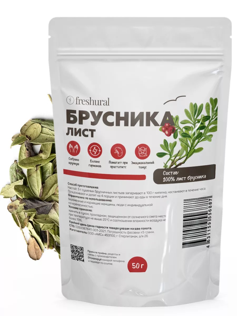 Lingonberry leaves possess numerous medicinal and prophylactic properties. They are used as a diuretic, disinfectant, and choleretic agent, and for urological and nephrological treatments. A lingonberry leaf infusion removes excess fluid, reducing swelling associated with various conditions due to the tannins, which have antiseptic properties. An infusion is used to treat oral infections, including stomatitis, periodontal disease, gingivitis, and tonsillitis. The plant's leaves have astringent and antiseptic properties. They are used to treat gout, gastritis, and liver problems. For women, it helps restore hormonal balance. It also helps stop bleeding, balance emotional tone, and is used for diseases of the genitourinary tract, mastopathy, adnexitis, and cystitis. For men, it helps relieve genitourinary tract problems, including urethritis, prostatitis, and cystitis. In addition to its traditional properties, lingonberry leaf is an additional remedy used: to cleanse waste and toxins; to treat low gastric acidity; to boost the body's defenses; to improve digestion; to improve skin condition; as an antipyretic drink; for mental instability; and to improve protein metabolism.