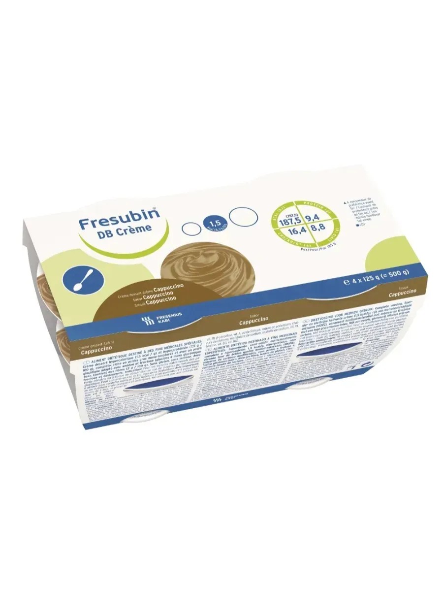 Fresubin Diabetes cappuccino-flavored cream for enteral nutrition is a high-calorie, complete, specialized therapeutic food intended for individuals requiring dietary support. This product is a paste-like mixture containing 1.5 kcal/g, making it suitable for individuals with increased energy needs.