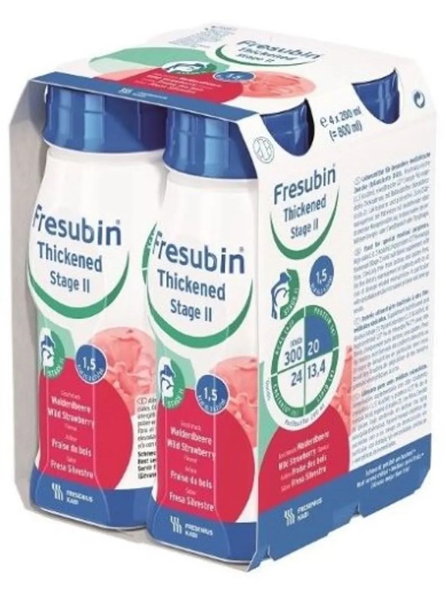 фрезубин сгущенный уровень 2 со вкусом земляники n4 д/энтер пит. для энтерального питания для диетотерапии пациентов с риском недостоточного питания и состояниями, требующими высоких затрат энергии и белка или пациентов с дисфагией сахароза, мальтодекстрин, инулин, цельный белок молока, концентрат белка молока, подсолнечное масло, рапсовоемасло, витаминный микс (вит. с, вит. pp, ?-каротин, пантотеновая кислота, вит. e, вит. b6, вит. b2, вит. b1, вит. a, фолиеваякислота, вит. k1, биотин, вит. d3, вит. b12), аскорбиновая кислота (вит. с), токоферола ацетат (вит. е), ?-каротин, витамина, калия цитрат, натрия хлорид, магния оксид, магния дицитрат, железо пирофосфат, цинка сульфат, меди сульфатмарганца хлорид, натрия фторид, хрома хлорид, натрия молебдат, натрия селенит, калия йодид, загуститель е 1442,стабилизаторы (соевый лецитин, е 471, е 407), вода, ароматизатор натуральный сандалового дерева экстракт, ароматизатор натуральный энтеральное (лечебное) питание - ступень 2 - консистенция жидкого заварного крема, цвет розовый, запах и вкус ванильный, сладкийуровень вязкости - 1 (по национальным стандартам великобритании продуктов с модифицированной вязкостью - консистенция жидкого заварного крема).0