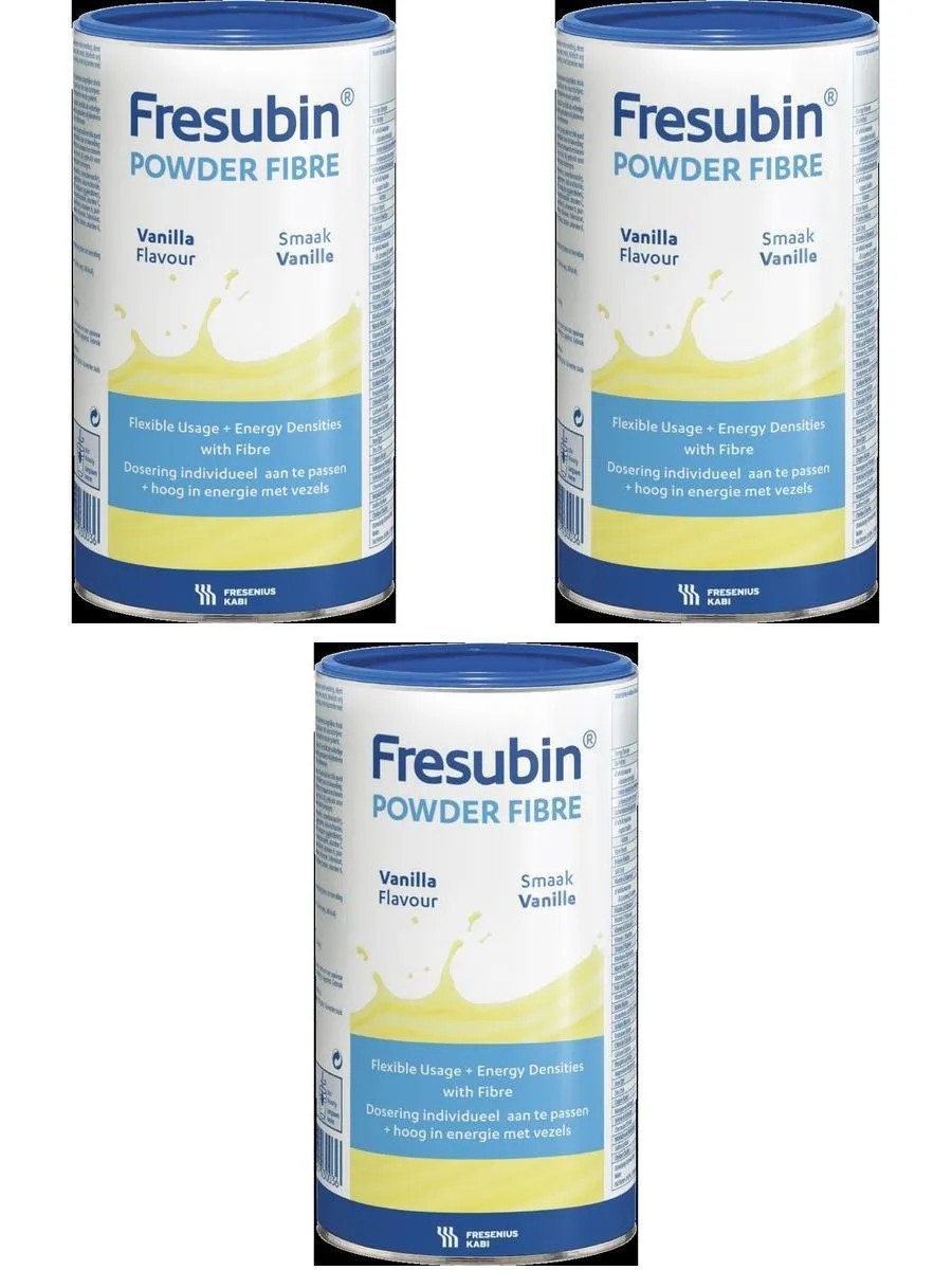 фрезубин смесь сухая со вкусом ванили 500,0 пор/банка. специализированный продукт для лечебного питания предназначен для перорального и зондового энтерального питания взрослых и детей с 3-х лет (с 3-х лет до 6 лет с осторожностью, под наблюдением врача) с недостаточностью питания или риском ее развития, в частности, у пациентов пожилого и старческого возраста, пациентов с онкологическими заболеваниями и другими хроническими катаболическими состояниями (например, вич/спид), воспалительными заболеваниями кишечника, в периоперационном периоде (в том числе при трансплантации органов), а также при других показаниях к энтеральному питанию и умеренных или повышенных потребностях в энергии мальтодекстрин, сахароза, пшеничный дектрин, рапсовое масло, концентрат молочного белка, изолят соевого белка, инулин (из цикория), подсолнечное масло, калия хлорид, натрия цитрат, калия цитрат, ароматизатор натуральный ванильного заварного крема, гидротартрат холина, соевый лецитин, хлорид марганца, витаминный премикс (мальтодекстрин, витамин с (l-аскорбиновая кислота), никотинамид, витамин e (dl-альфа-токоферола ацетат), пантотеновая кислота (d-пантотенат кальция), витамин b6 (пиридоксина гидрохлорид), витамин b2 (натрия рибофлавин 5′-фосфат), витамин b1 (тиамина гидрохлорид), β-каротин, витамин a (ретинола пальмитат), витамин k1 (фитоменадион), фолиевая кислота, биотин (d-биотин), витамин d3 (холекальциферол), витамин b12 (цианокобаламин)), натрия хлорид, лимонная кислота, карбонат кальция, оксид магния, меди сульфат, натрия селенит, цинка сульфат, витамин с (l-аскорбиновая кислота), хлорид хрома, молибдат натрия, калия йодид, витамин а (ретинола пальмитат), β-каротин