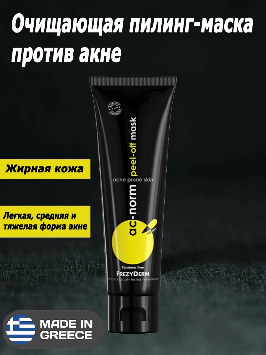 Откройте для себя мощное решение для борьбы с акне — Очищающую пилинг-маску FrezyDerm ac-norm, произведенную в Греции. Это идеальный продукт для тех, кто страдает от жирной кожи, склонной к высыпаниям. Маска разработана с учетом всех потребностей кожи, подверженной акне, и предлагает глубокое очищение, которое вы заметите сразу после первого применения. FrezyDerm ac-norm эффективно удаляет загрязнения, отмершие клетки и черные точки. При нанесении маска прилипает к коже, захватывая все ненужное, и при снятии оставляет ощущение свежести и чистоты. Она сужает поры и матирует, что особенно важно для жирной кожи. Благодаря антираздражающим ингредиентам, вы сможете наслаждаться комфортом, не беспокоясь о возможных негативных реакциях. Эта очищающая маска не только очищает, но и подготавливает кожу к впитыванию активных ингредиентов последующих средств ухода. Дерматологически протестированная формула подходит для легкой, средней и тяжелой формы акне. Она помогает удалить излишки кожного сала и отмершие кератиновые клетки, а также подготавливает кожу к местному лечению акне. Основные активные ингредиенты, такие как экстракт магнолии, чернушка посевная и тыква обыкновенная, обеспечивают антибактериальное, противовоспалительное и адсорбирующее действие. Пептиды моринги способствуют глубокому очищению, что делает маску идеальным выбором для борьбы с прыщами. Применение маски простое: наносите ее легкими центробежными движениями, избегая области вокруг глаз. Оставьте на 15–20 минут, чтобы она высохла, а затем аккуратно снимите пленку, потянув снизу вверх. Ощутите, как ваша кожа становится чистой, гладкой и готовой к дальнейшему уходу. Не упустите возможность вернуть своей коже здоровье и красоту с помощью FrezyDerm ac-norm Очищающей пилинг-маски против акне. Это надежное средство от акне и прыщей, которое обязательно должно быть в арсенале каждого, кто стремится к идеальному состоянию кожи. Откройте для себя дерматокосметику нового уровня и позвольте своей коже сиять!