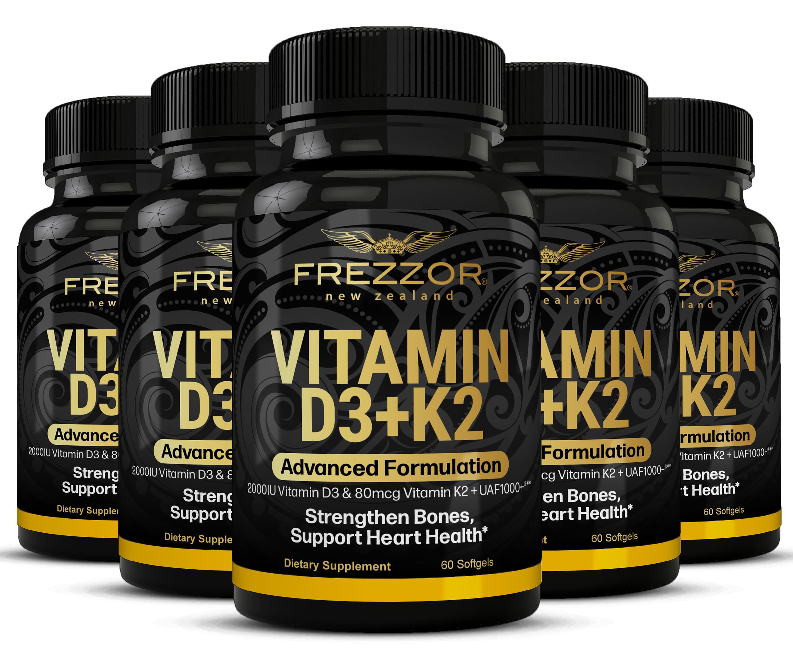 FREZZOR Vitamin D3 and K2 Caps High Potency D3 2000IU and K2 (MK7) 80mcg Unique Vitamin D3 from 100% New Zealand Sheep's Wool Lanolin. 300 Softgels 5 Month Supply