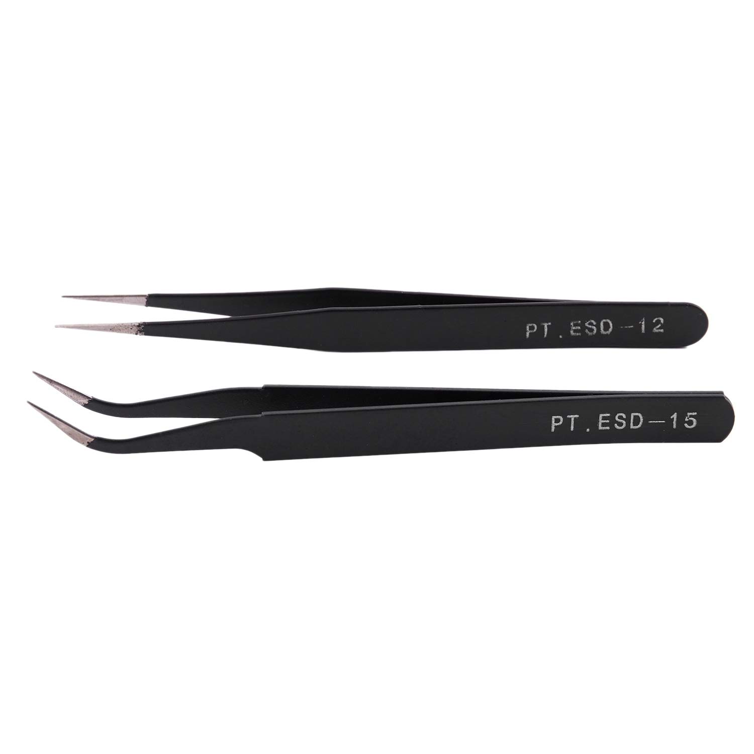 FRGMNT Nail Art Rhinestones Eyelashes Extension Straight & Curved Tweezers Tool Set-Black