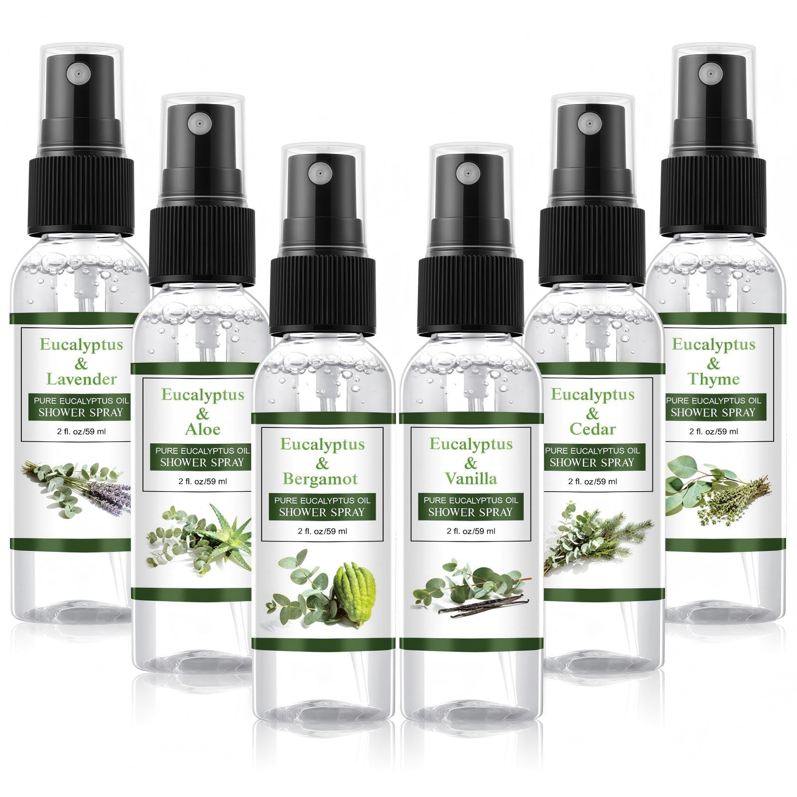 Features: Transform shower spray into a nourishing ritual with our curated eucalyptus blends, including Eucalyptus amp. Vanilla's sweet warmth and Eucalyptus amp. Each fragrance is thoughtfully selected to elevate your hygiene routine into a personal retreat. Enjoy a variety of scents with 6 compact 59ml bottles, for sharing and personal use. The small capacity cuts down on waste and adds efficiency for short trips or daily needs, allowing you to select a scent as per your preference or mood effortlessly. Specifications: Color: clear Size: about 2oz Package includes: 6 x Shower Spray Notes: Manual measurement, please allow slight errors on size. The color may exist a slight difference due to different screen displaysVersatile Application: suitable for diverse settings like homes, offices, schools, and more, this eucalyptus oil mist is a versatile companion for daily hygiene The eucalyptus blend adds a refreshing sensory dimension, making it well suited for both individual use and as a considerate gift for special occasions. Compact Convenience: each eucalyptus relief mist portable 2oz bottle of our hydrating shower spray is designed for on the go use, fitting easily into handbags, backpacks, or travel bags Nice for quick cleanses during travels, commutes, or outdoor adventures, ensuring your skin stay clean and fresh wherever you are. Gentle and Moisturizing Formula: our eucalyptus spray for shower cleans thoroughly while nourishing your skin Alcohol free with moisturizing ingredients, it leaves skin soft and residue free Safe and reliable for all skin types, it delivers cleanliness without the harsh drying effects. Soothing Aromatic Experience: indulge in 6 distinct eucalyptus based fragrances Eucalyptus and lavender, eucalyptus and aloe vera, eucalyptus and bergamot, eucalyptus and vanilla, eucalyptus and cedar and so on, each scent transforms shower spray into an aromatic experience tailored to your mood and occasion, leaving a refreshing scent trail. Thoughtful Gift Option: offer a gift of care and elegance with our eucalyptus blend shower spray set Each pack of 6 diverse scents assures not only cleanliness but also a touch of thoughtful Ideal for birthdays, holidays, and travel, it's a delightful daily essential for friends, family, and colleagues.