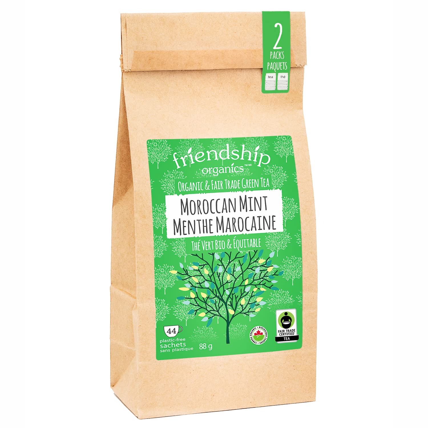 Friendship Organics Moroccan Mint Tea Bags Organic and Fair Trade Green 44 Count