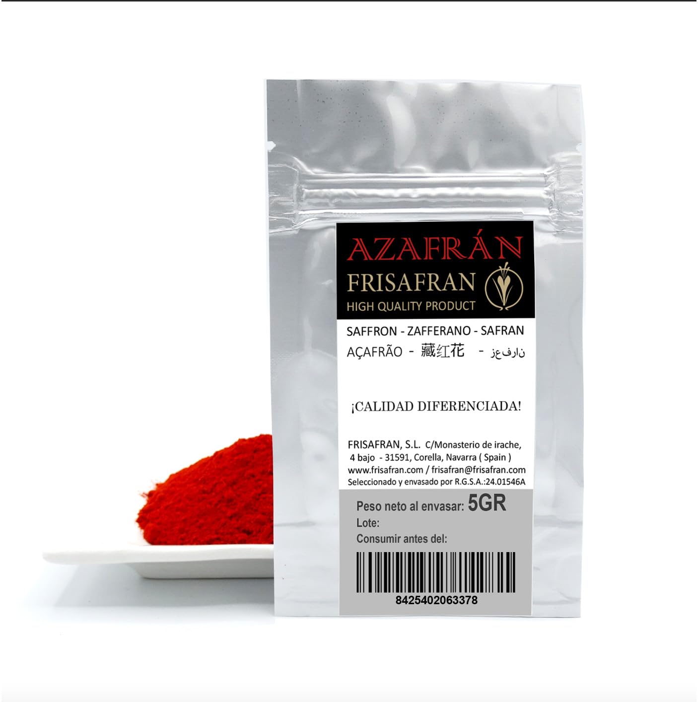 FRISAFRAN FRISAFRAN | Ground Saffron 5g | Saffron Powder | Saffron Ground | Saffron Powder | Organic Saffron | Organic Saffron | Ground Saffron | Colourant or Preservative Free | Certified Spice | Natural