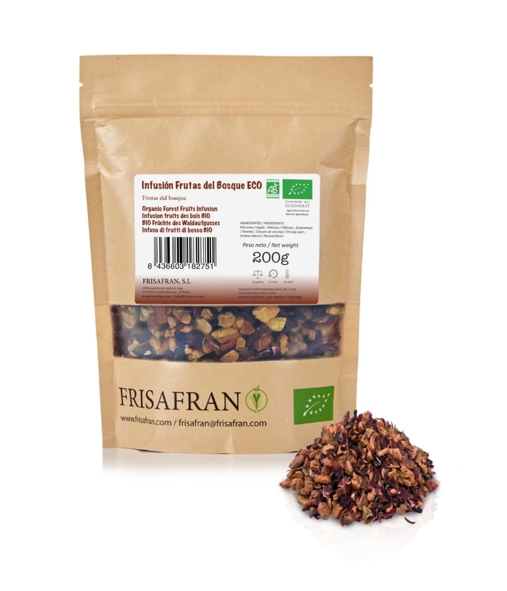 FRISAFRAN Vrac Infusion de Fruits des Bois Bio 200g Relaxante et Riches en Vitamines Infusion Rouge Fruit mélangé 200g