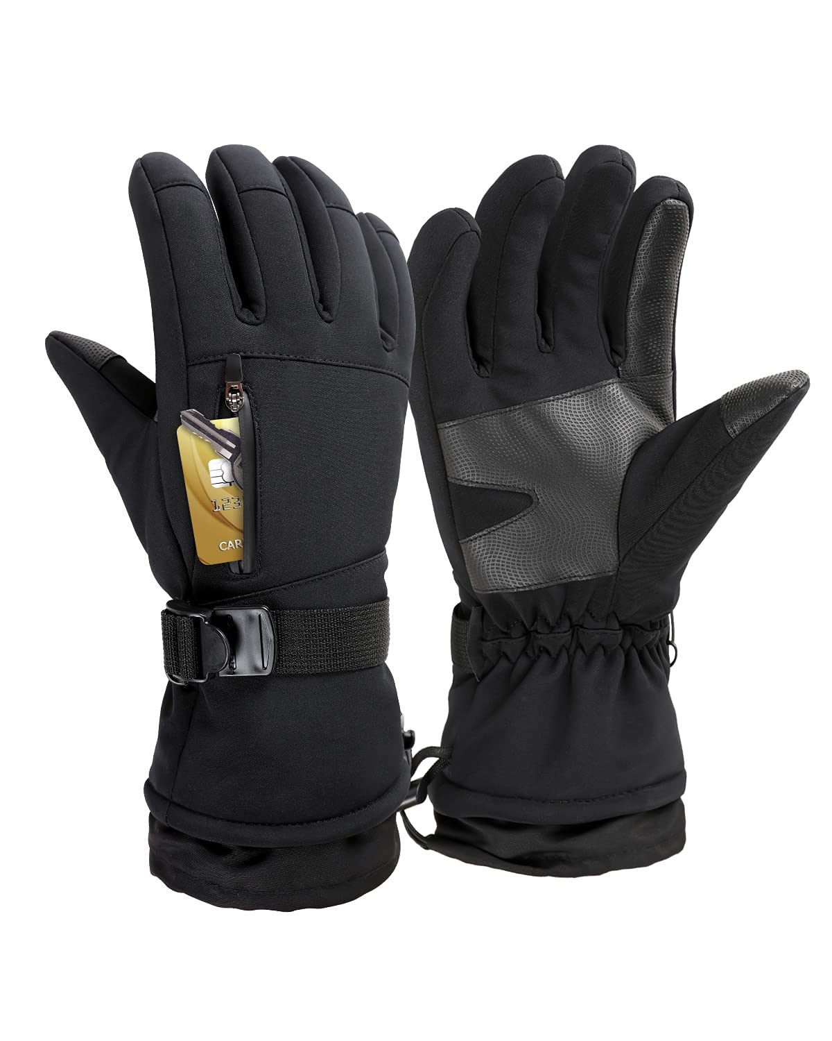 Ideal for Winter Sports: These are an excellent pair of snow gloves for women,men and kids that will fully support you while you engage in your favorite winter sports such as skiing and snowboarding. Touchscreen Friendly Design: Allows you to utilize your touchscreen without taking the gloves off outside in the cold. Easy to Use: Convenient zipper pocket for small essentials, adjustable buckle wrist strap with drawstring closure for added weather protection. Breathability Alongside Waterproof: Waterproof and moisture-wicking TPU membrane insert which ensures maximum dry comfort so even if you have to endure sweaty,damp,cold or even humid conditions,sweat is released so that your hands remain dry. Warmth & Protection: These padded and insulated winter ski gloves are designed using 3M Thinsulate Insulation and effectively trap heated air inside for thermal efficiency. They can even work in conditions as low as -30 F.