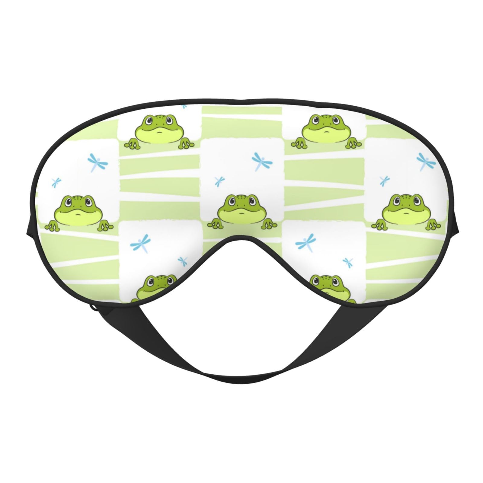 Package Details 1. Material: Polyester 2. Package Includes: 1 Pack Sleeping Mask 3. Patterns: Frogs and Dragonflies 4. Size: 7.9In x 4In(20Cm x 10Cm ) Features 1. This eye mask is made of imitation silk fabric, which is healthy and breathable, has a good light-blocking effect, and is super soft and comfortable to wear. 2. Elastic adjustable buckle design, it will not move or fall off when you sleep, easy to adjust, double-sided design, both sides can be used. 3. The soft eye mask is a good helper to eliminate fatigue, improve sleep quality, and increase energy for work and study. It is suitable for various occasions such as indoors, outdoors, camping, traveling, shift work, meditation, yoga, etc. Washing Tips Hand wash recommended, air dry, do not use bleach. Premium Service If you have any other requirements, please let us know by e-mail when you order or receive this item. We will reply within 24 hours.Best Sleep Essentials: Our double-sided sleeping mask is a must-have for anyone who wants to improve their sleeping experience. Say goodbye to eye swelling and hello to a more rejuvenated you!. Wide Range of Uses: Our sleeping eye mask is designed with functionality and versatility in mind, perfect for a variety of occasions. Suitable for travel, naps, flights, camping, and yoga. Perfect Size: Our sleeping mask measures 7.9 inches x 4 inches (20 cm x 10 cm), suitable for different face shapes and sizes. Adjustable design, suitable for any sleeping position and stays in place, creating a perfect sleeping environment. Double-Sided and Adjustable Design: Our eye mask is double-sided, can be flipped for use, and comes with an elastic adjustable buckle, allowing you to easily customize the right size to your preference. Premium Material: Our double-sided sleeping mask is made of high-quality polyester, which makes the sleeping eye mask breathable and lightweight, not only healthy and breathable but also has an excellent light-blocking effect.