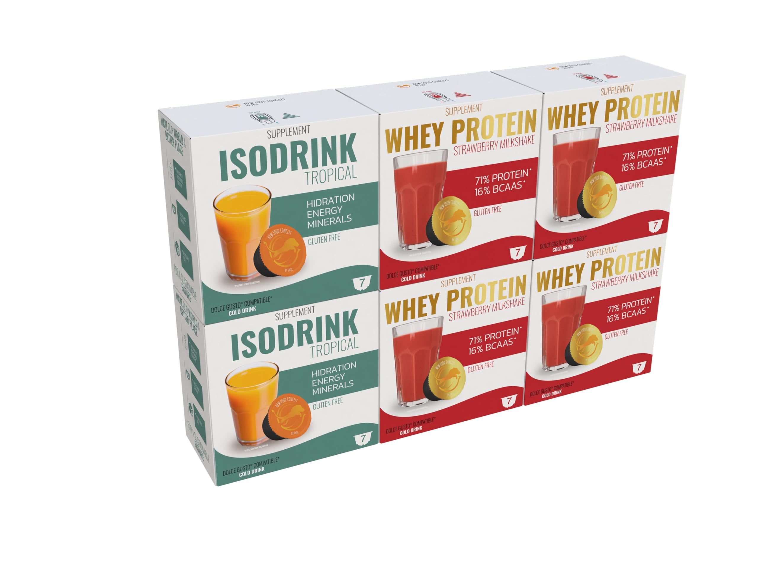 FROL ENERGIZER - Pack : Isodrink Tropical (2 x 7 capsules) Whey Protein Strawberry (4 x 7 capsules) Dolce Gusto capsules compatibles - Exclusive