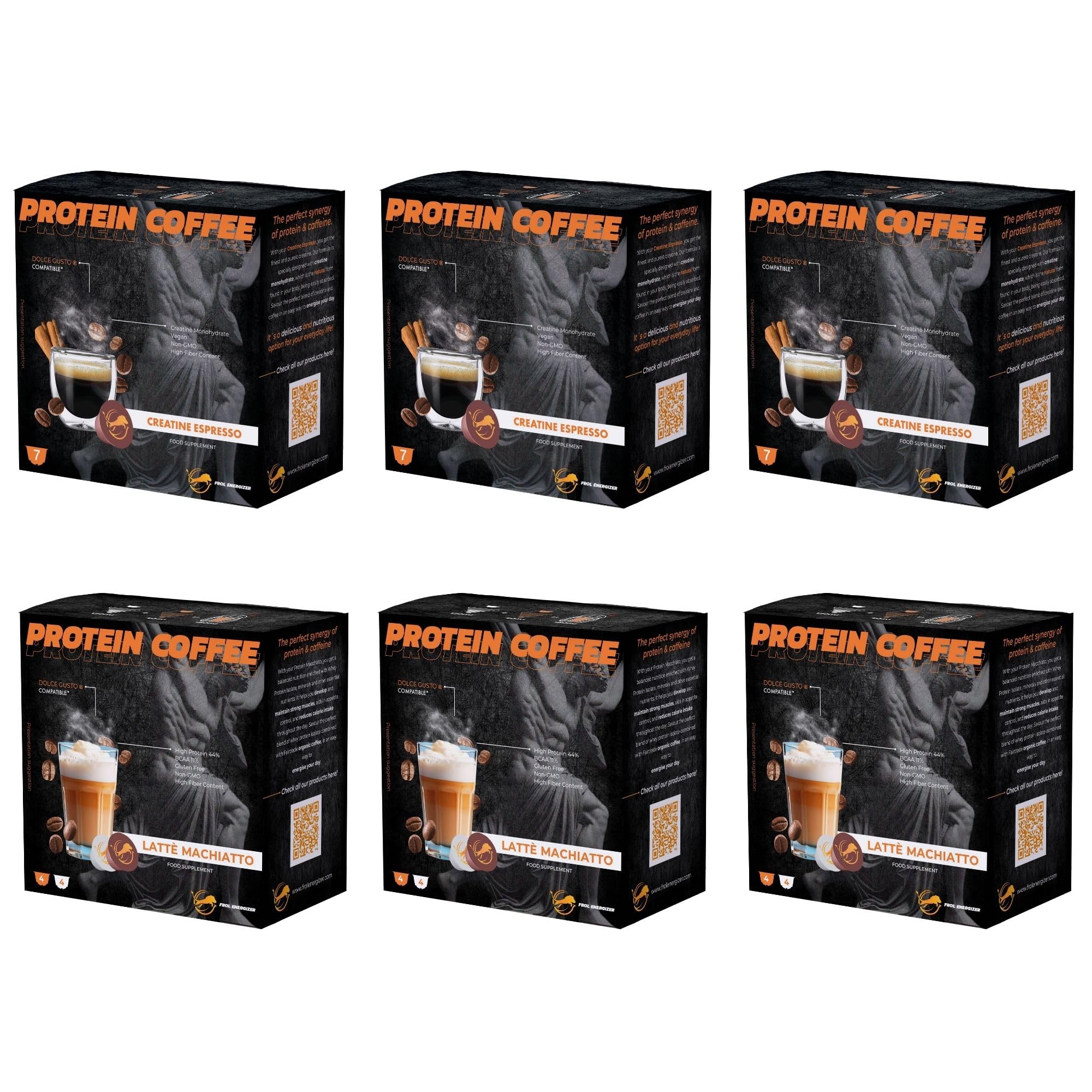 FROL Explorer Ltd Protein Macchiato (3x7) & Creatine Espresso (3x7) Pack Protein and Espresso Coffee Improving Performance for Workouts (6 Boxes)