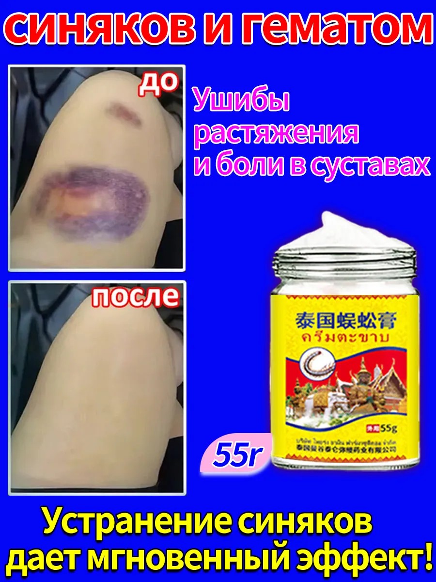 стимулирующая кровообращение в месте удара и травмы. Способствует быстрому заживлению синяков, расширению капилляров и кровеносных сосудов, что важно для сведения синяков и снижения боли. Активизирует поверхностное кровоснабжение и рассасывающий эффект в местах ушибов и гематом. Бальзам уменьшает боли и воспаление в суставах. Имеет противовоспалительное действие и снижает боль. Подходит для спортсменов, занимающихся контактными видами спорта. Идеальная походная мазь поможет при растяжениях, болях в мышцах, ушибах, снимет зуд от укусов и отпугнет новых благодаря эфирным маслам. Производится в России.